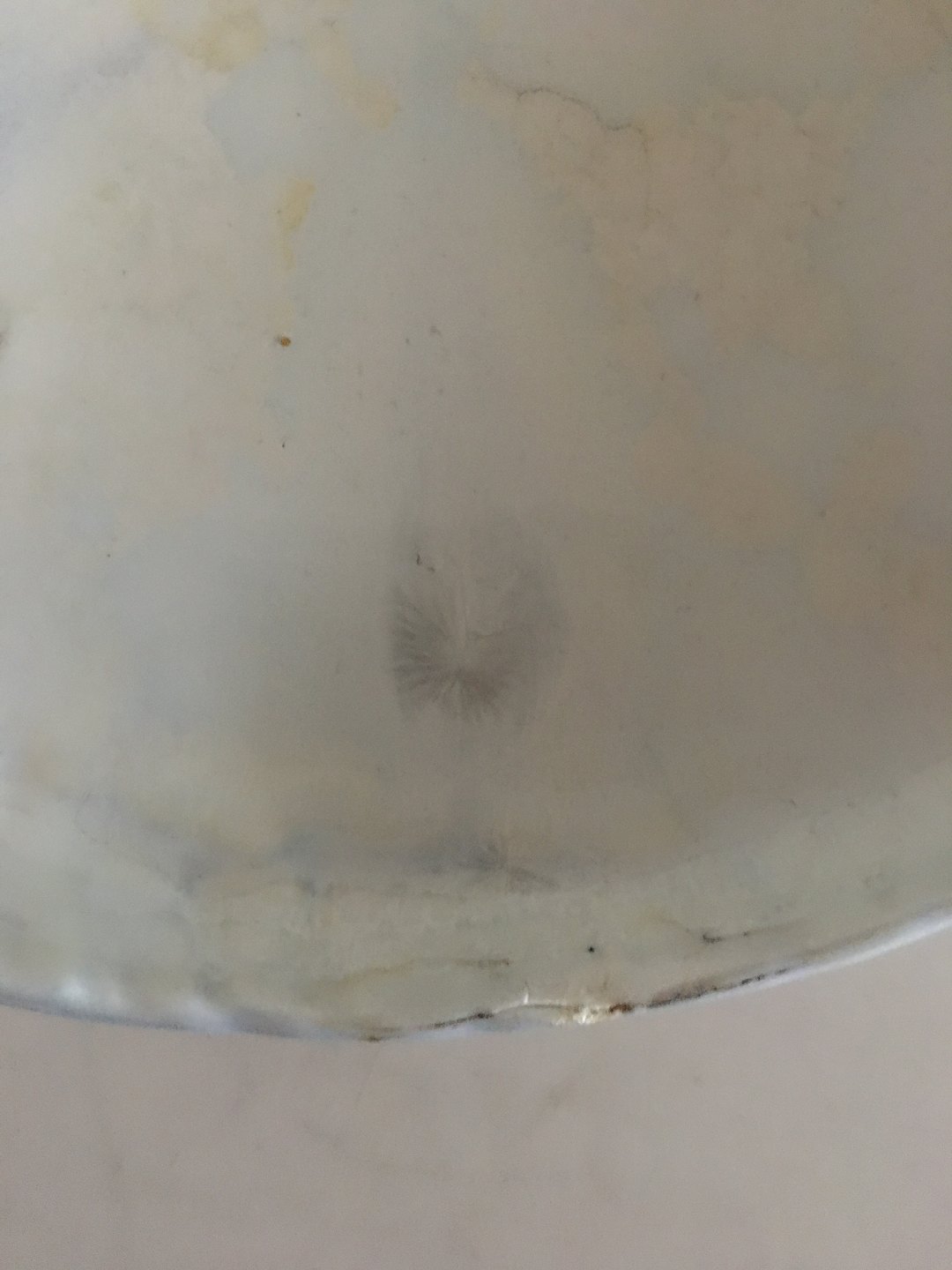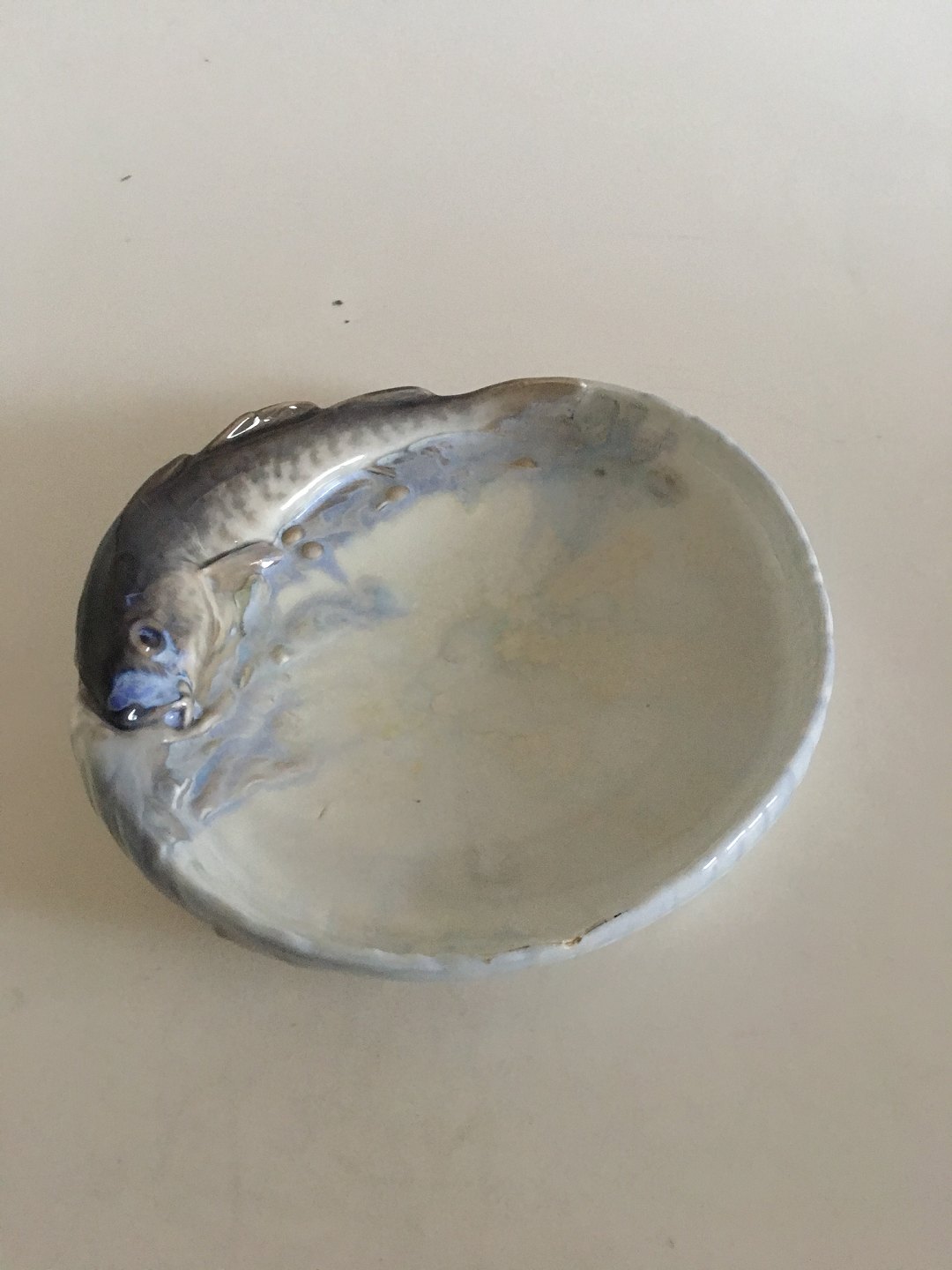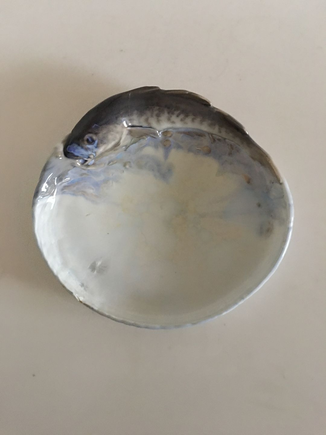 Royal Copenhagen Unique Bowl in Crystaline Glace with Fisk. Unique signed 10-11-1923. 26.5 cm dia (10 7/16"). Has a chip on the bowl's edge.