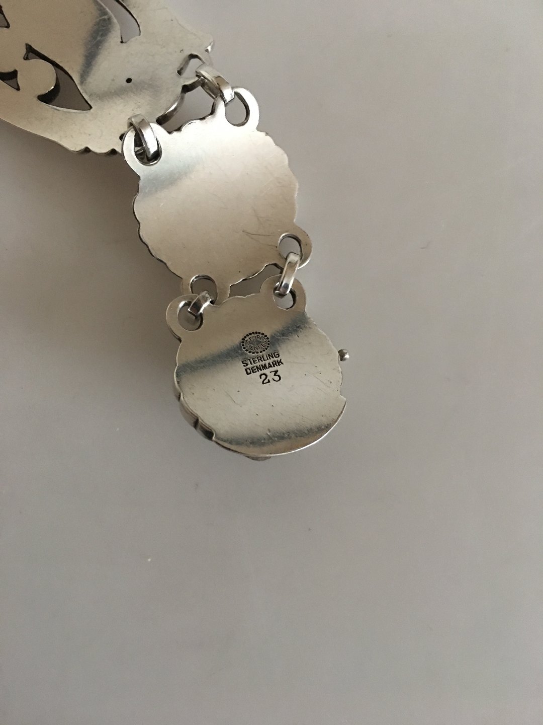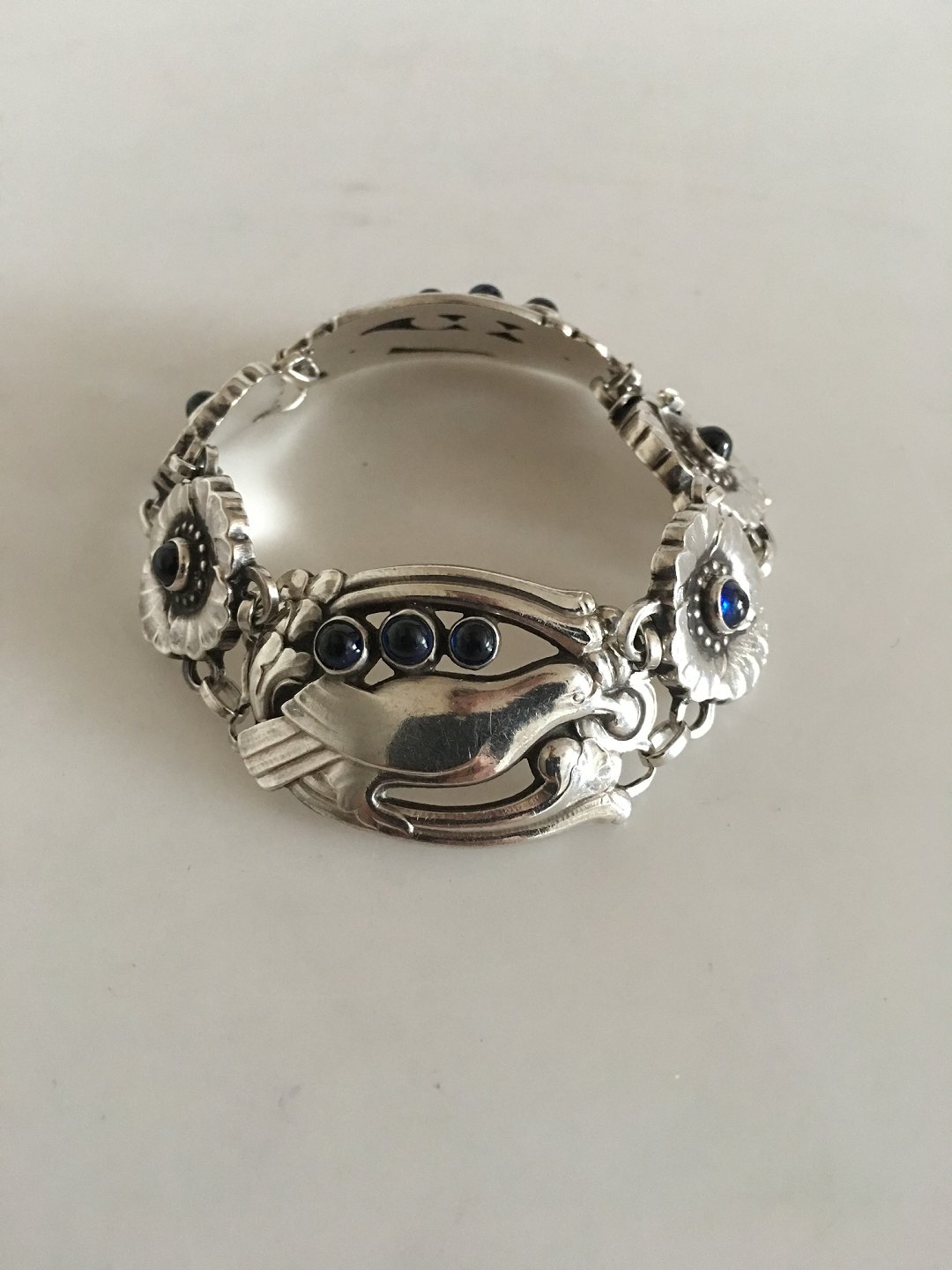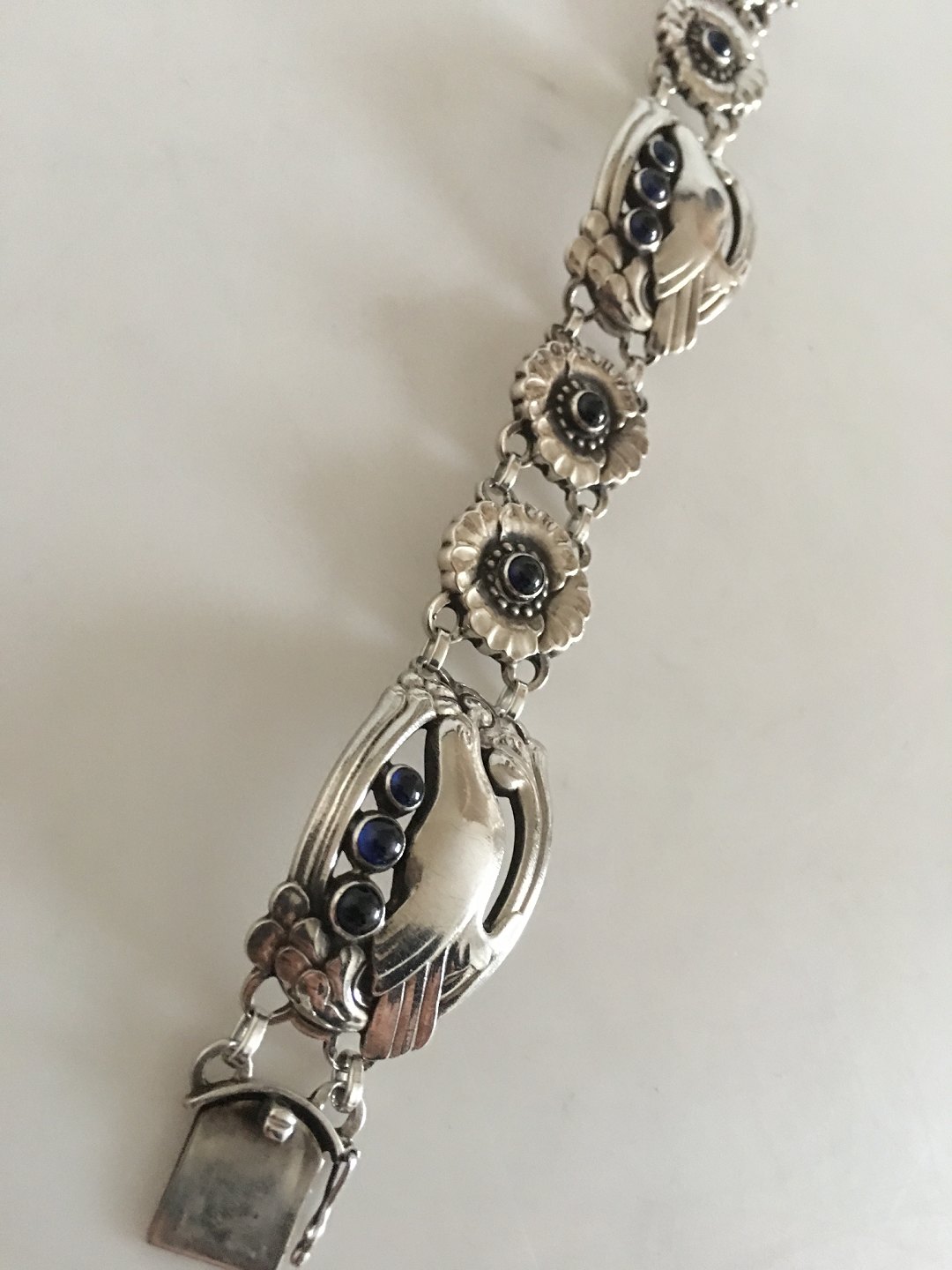 Georg Jensen Sterling Silver Bracelet No 23 with Birds and 10 Synthetic Saphires. Measures 18 cm / 7 3/32 in. Weighs 39 g / 1.40 oz. From after 1945. In beautiful condition.