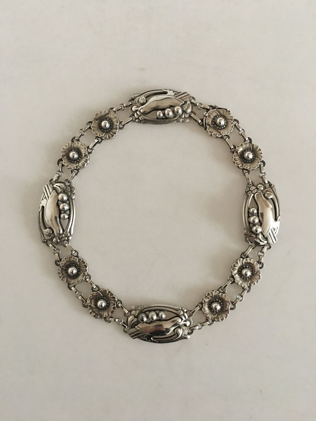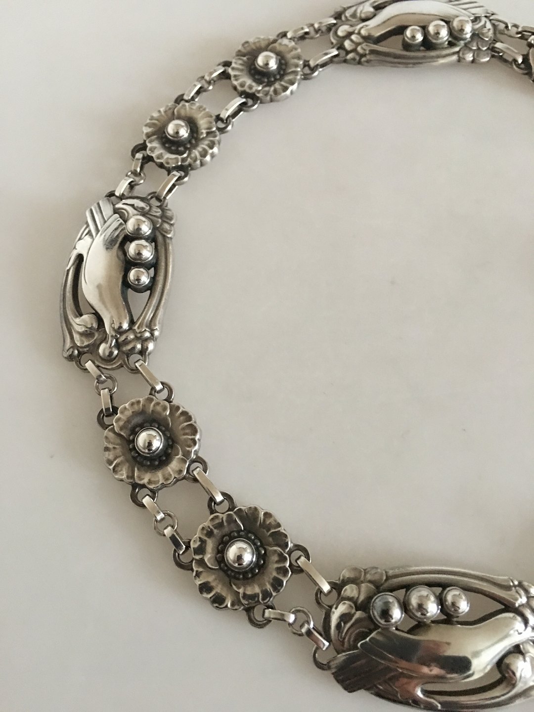 Georg Jensen Sterling Silver Necklace No 26 with Birds and Silver Stones. Measures 41 cm L (16 9/64"). Weighs 91 grams (3.20 oz). From after 1945. In beautiful condition.