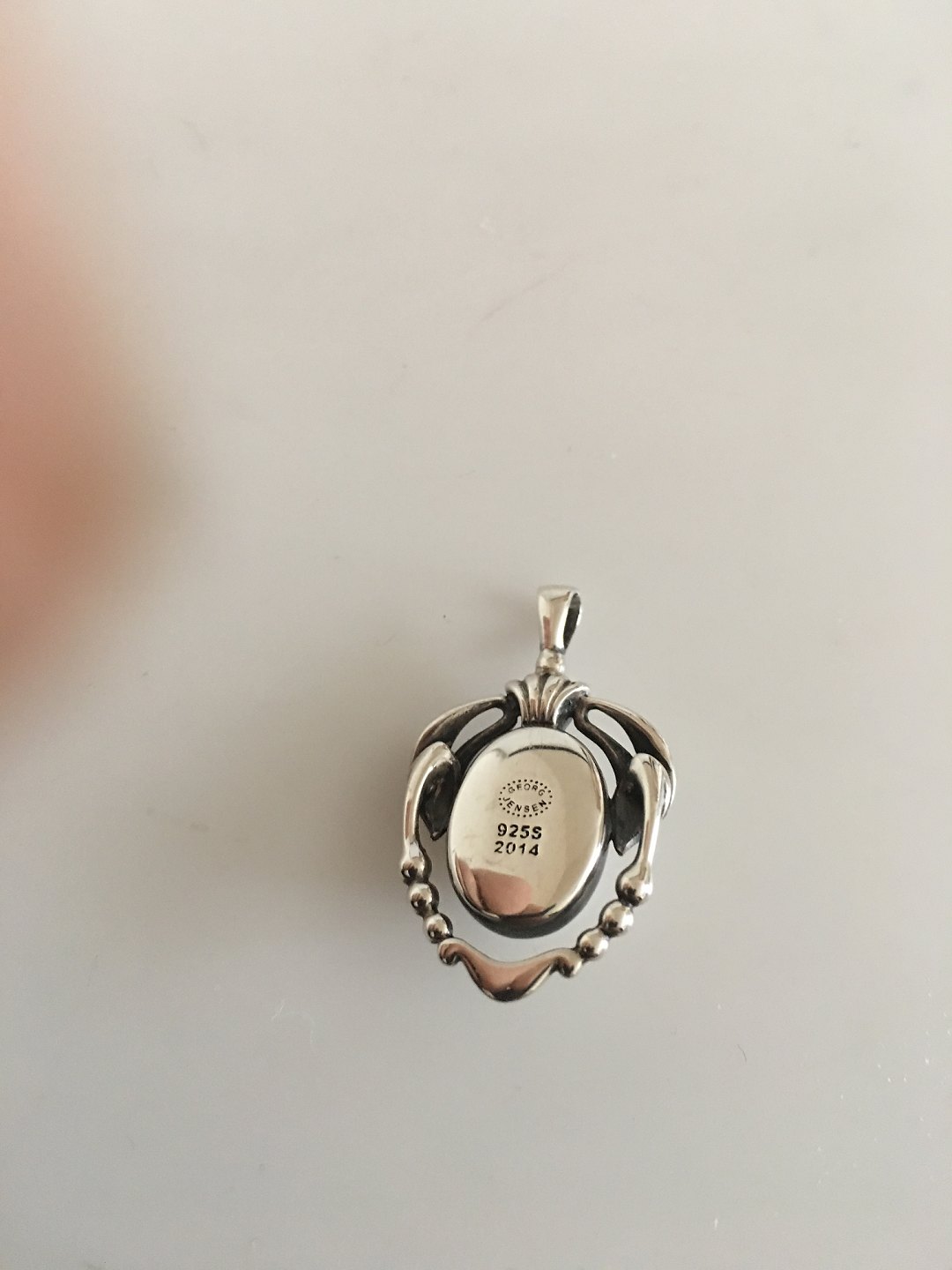 Georg Jensen Sterling Silver 2014 Annual Pendant with Silver Stone. Measures 3 cm (1 3/16"). Weighs under 5 grams.