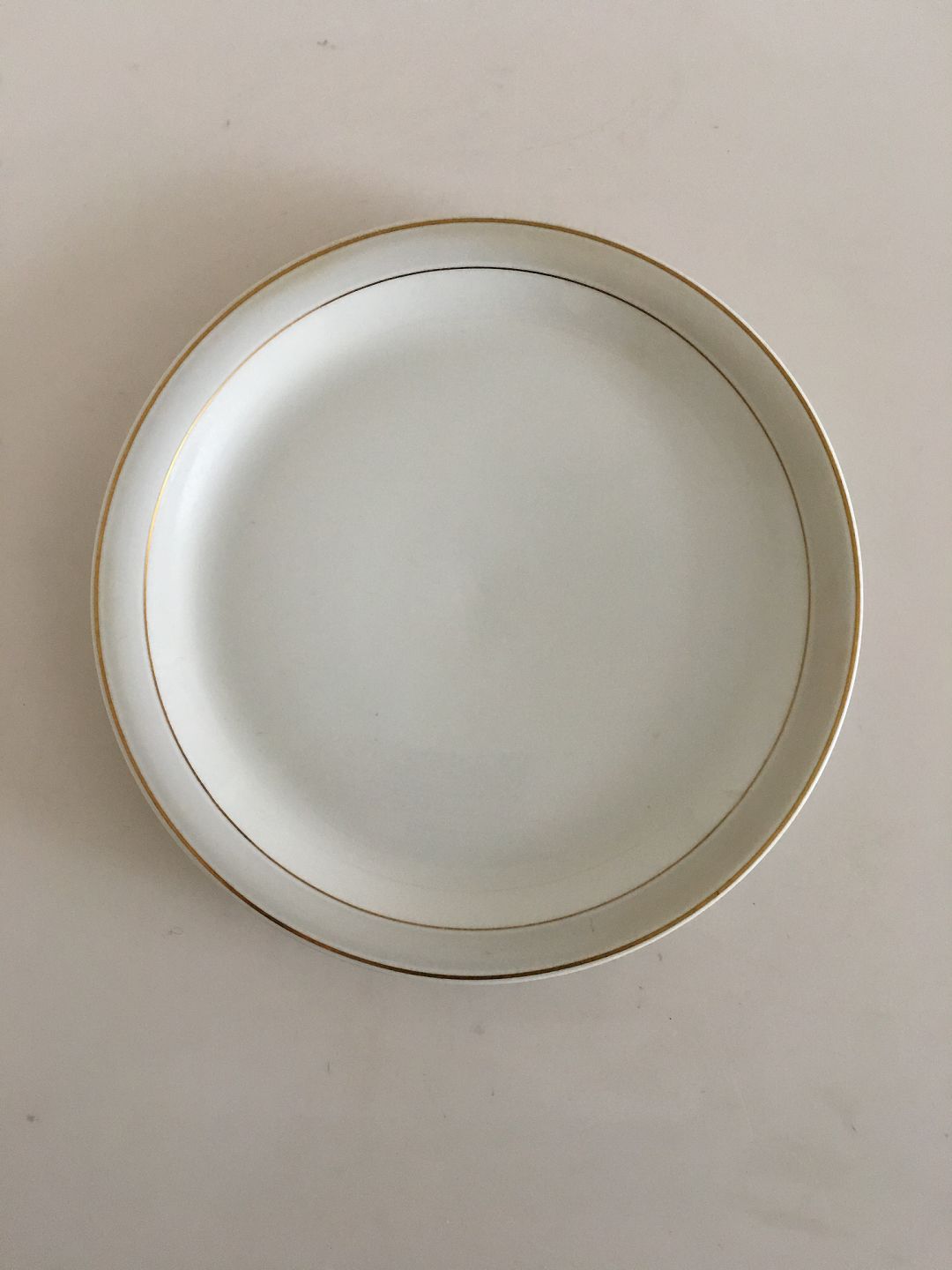 Bing & Grondahl Tiber Cake Dish No 101. 24.5 cm dia (9 41/64"). White with Light Grey Border and Gold Edge.