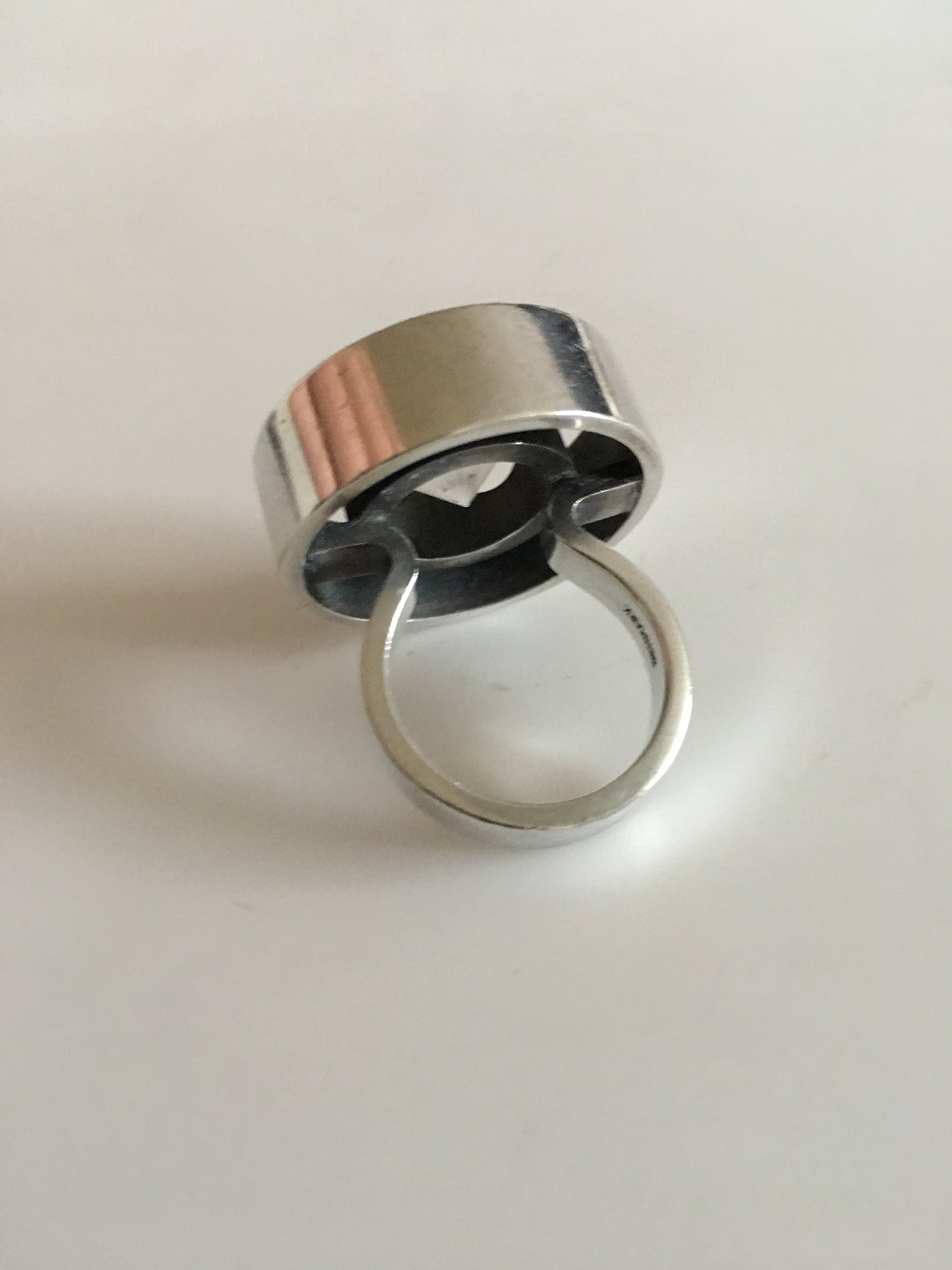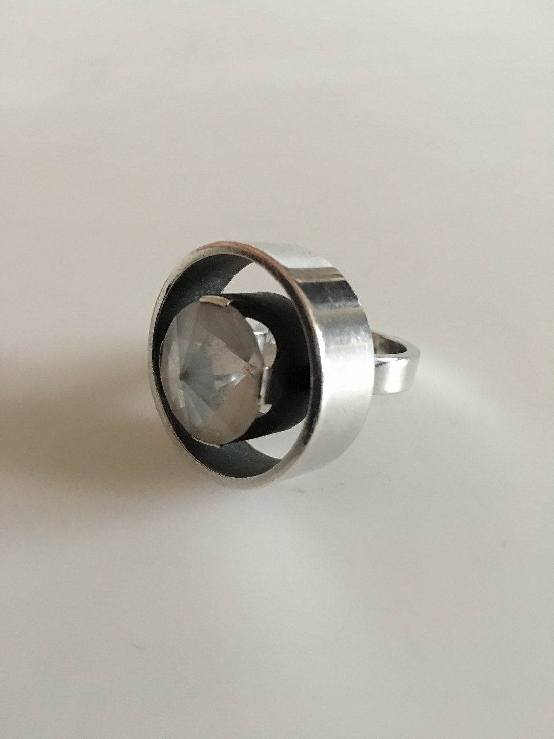 Hans Hansen Sterling Silver Ring with Clear Quartz. Size 55 (US Size 7). Weighs 24 grams (0.90 oz).