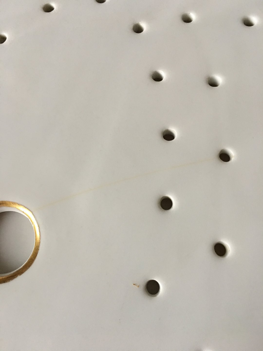 Royal Copenhagen No 93 White with Flowers and Gold Fish Grate 37 cm (14 9/16"). Fits the oval serving platter 47 cm. Has a hairline crack. Rare dinner service from 1894-1898. Handpainted