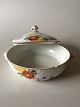 Royal Copenhagen No 93 White Half Lace Lidded Serving Dish w. Flowers and Gold. 20 cm dia (7 7/8"). 6 cm H (2 23/64"). The lid and the bowl is chipped, look at pictures. The gold has some wear to it. Rare dinner service from 1894-1898. Handpainted.