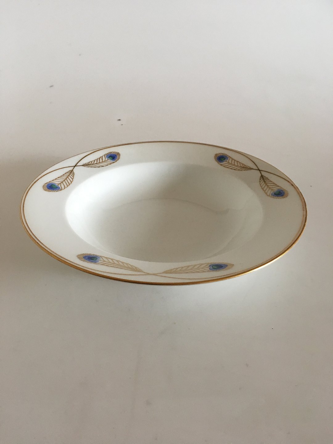 Royal Copenhagen No 118 Deep Soup Plate w. Golden Peacock Feather Ornament. In nice whole condition, with minor wear to the gold on the edges. Antique, Rare Dinner Service Pattern from Royal Copenhagen.