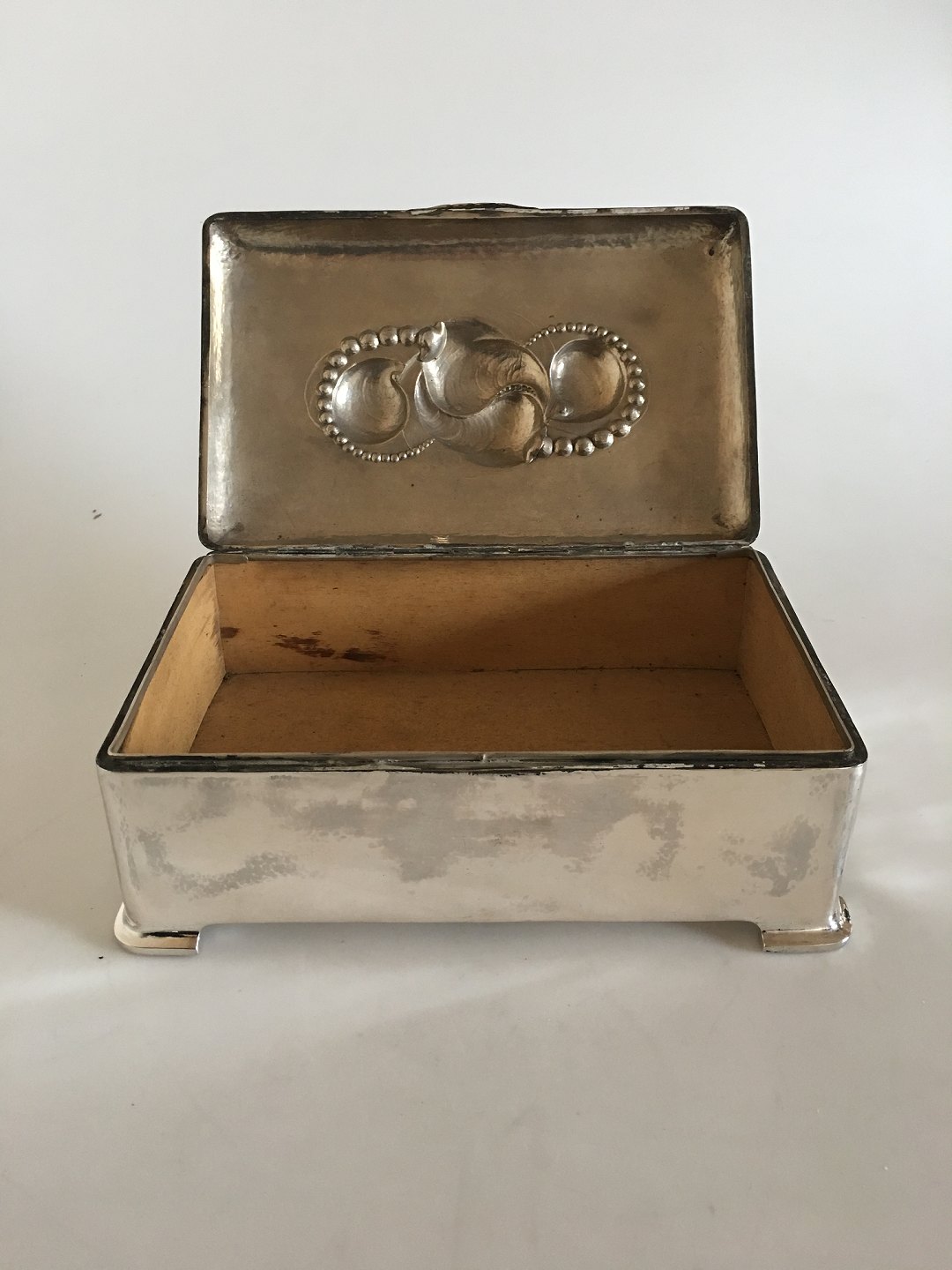 Large Evald Nielsen Silver Box. Silver Ornament with Shell Forms and whole Silver Pearls. Measures 15 x 24.5 cm (5 29/32" x 9 41/64"). 9 cm H 3 35/64"). Weighs 1155 grams / 40.88 oz. In beautiful condtition.