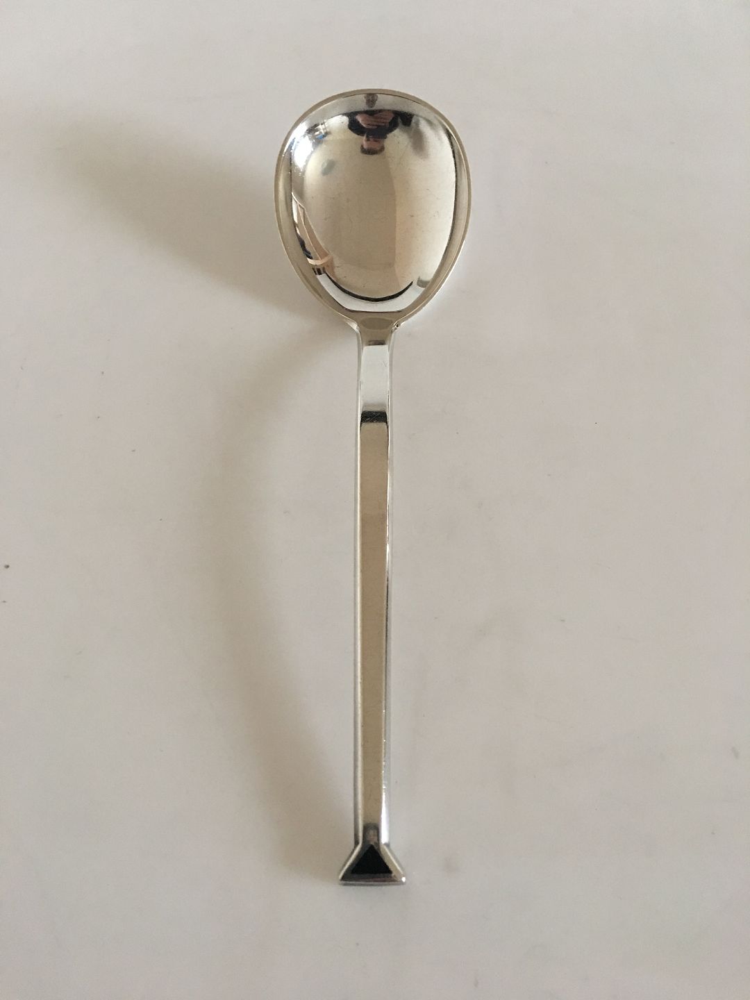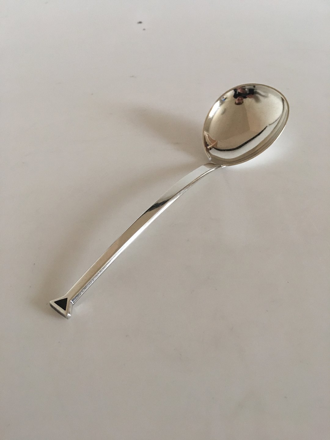 Hans Hansen Sterling Silver Serving Spoon Ornamented with Onyx. 20.5 cm L (8 5/64")