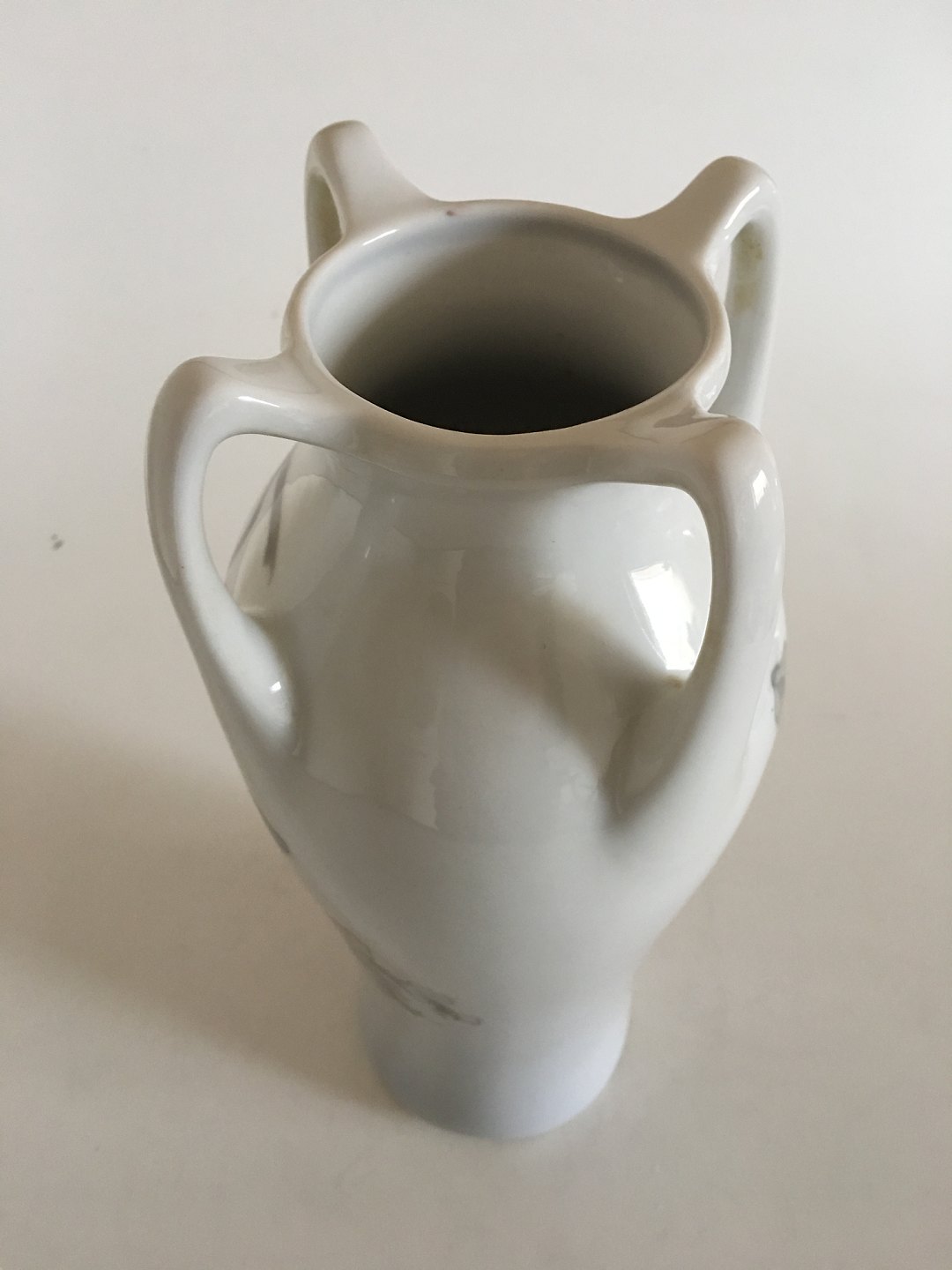 Royal Copenhagen Art Nouveau Vase No 330/246 with 4 Handles and Honeysuckle Motif. 33 cm H (12 63/64"). 1st Quality. In nice whole condition.
