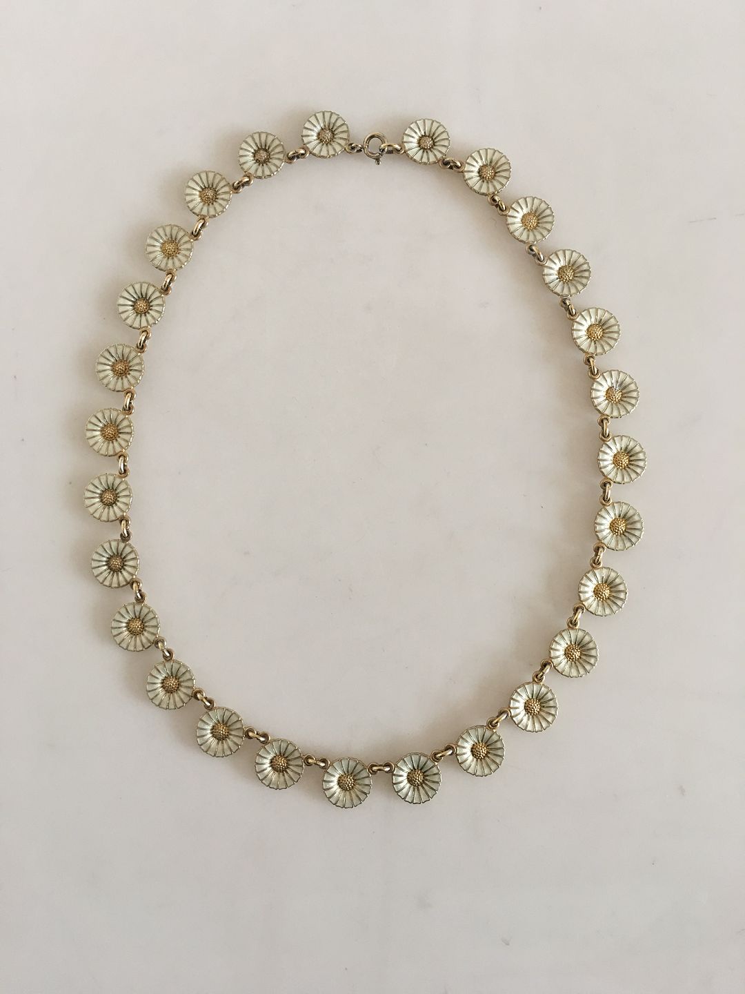 Anton Michelsen Daisy Necklace in Gilded Sterling Silver and White Enamel. 40 cm L (15 3/4"). Weighs 32 grams /1.15 oz. In nice condition.