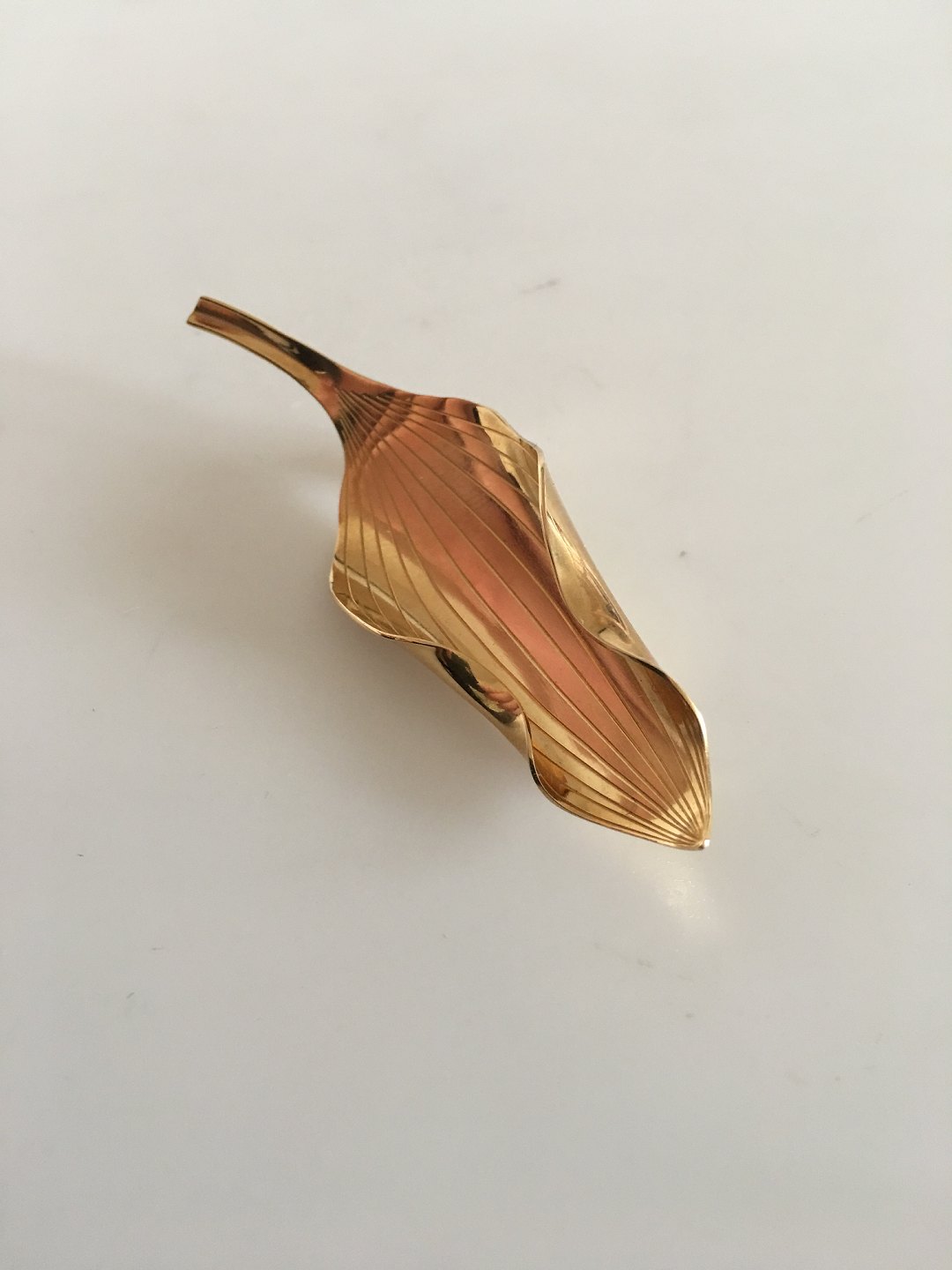 Anton Michelsen Leaf Shaped Brooch in 18K Gold designed by Gertrud Engel