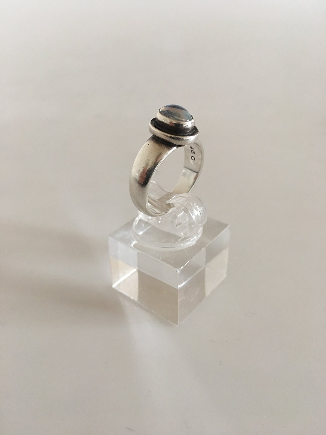 Georg Jensen Sterling Silver Ring No 46C with Clear Stone. From after 1945. Ring Size 51 / US 5 1/2. Weighs 4.8 g / 0.17 oz.