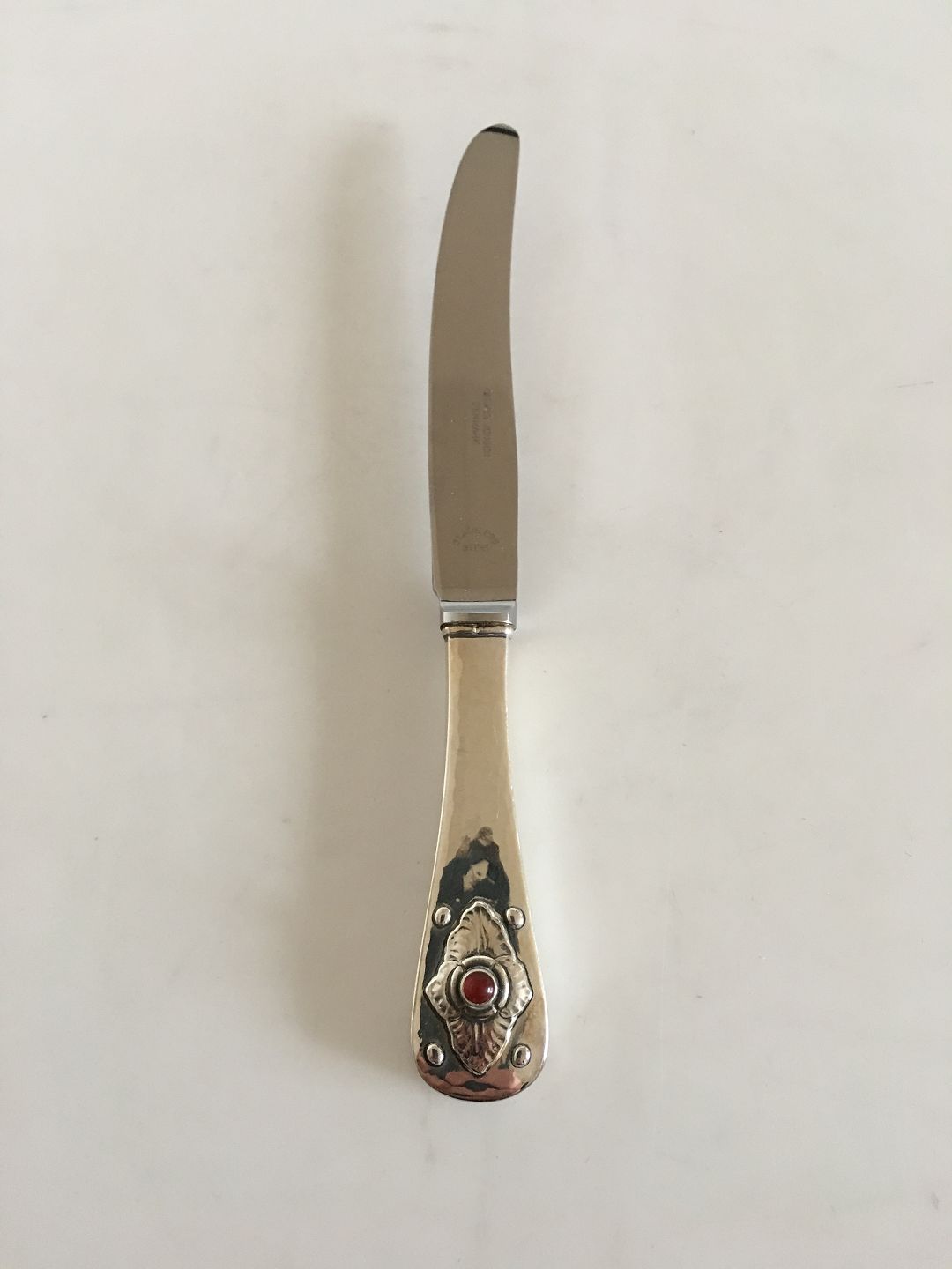 Georg Jensen Sterling Silver 75 Year Jubilee Child Knife with Carnelian Stone. Manufactured in 1979. 16.5 cm L (6 1/2").