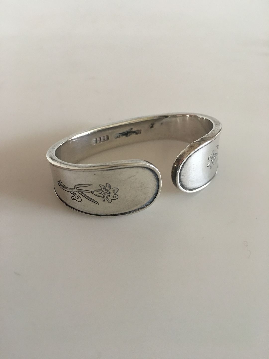 Hans Hansen Sterling Silver Napkin Ring with Flower Motif. 4.6 cm W (1 13/16")