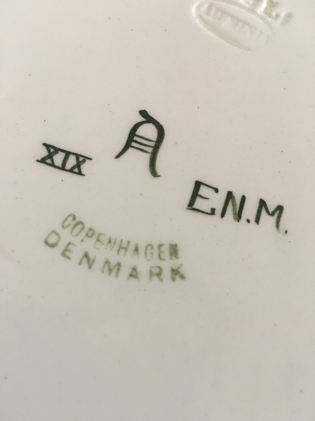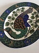Aluminia Oval Earthenware Tray No XIX with Peacock Motif. Signed EN.M. Measures 52.5 x 42 cm (20 43/64" x 16 17/32") In great condition, without any chips, cracks or reparations.