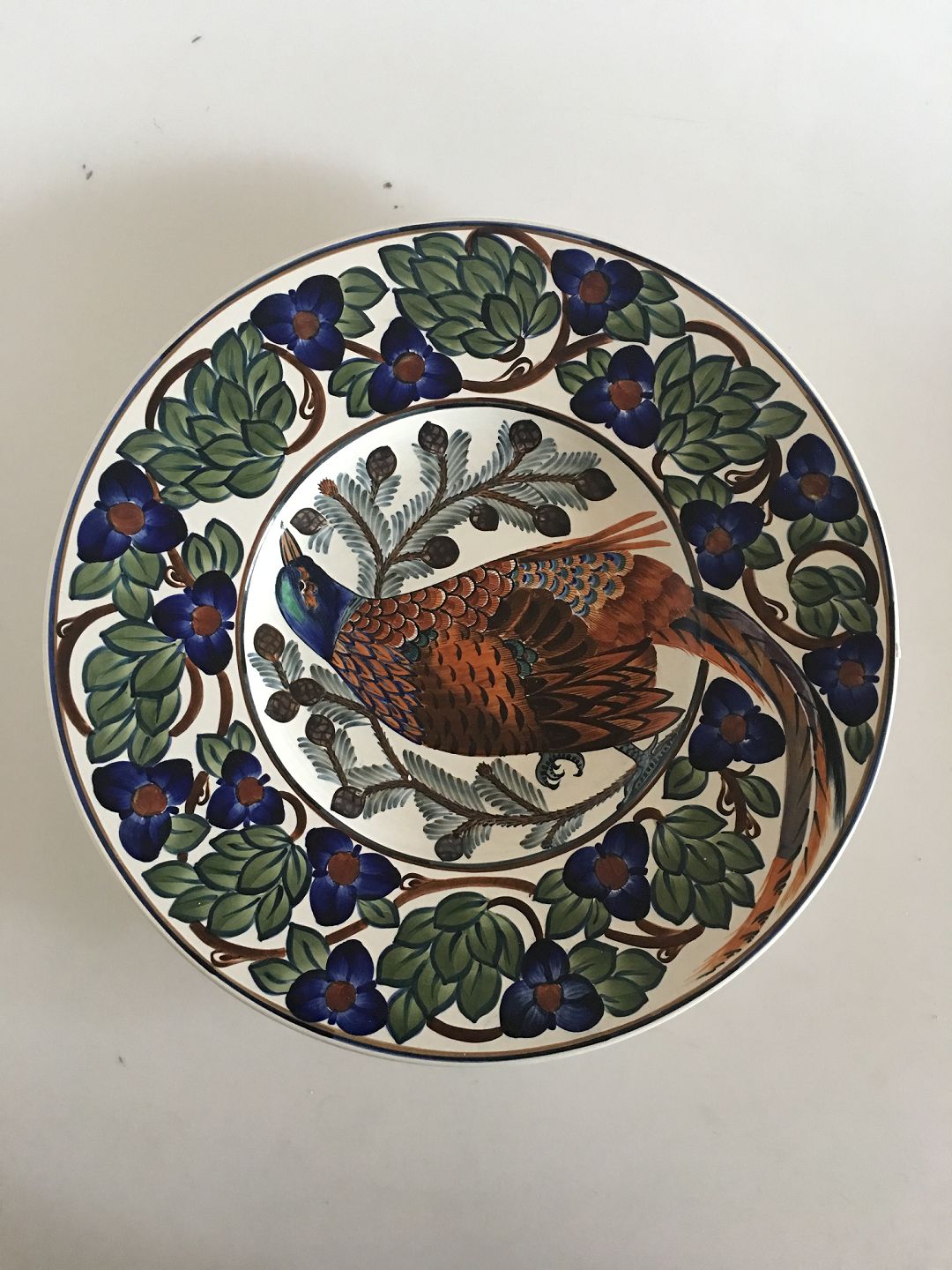 Aluminia Earthenware Round Dish / Bowl No 581/300 with Bird Motif. Signed MS. Measures 45.5 cm dia (17 29/32"). In great condition without chips, reparations etc.