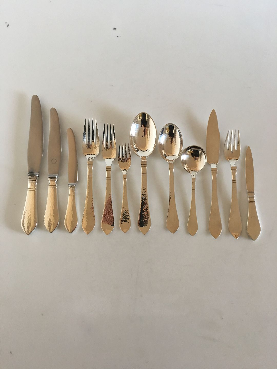 All the pieces are in beautiful silver hammered condition.