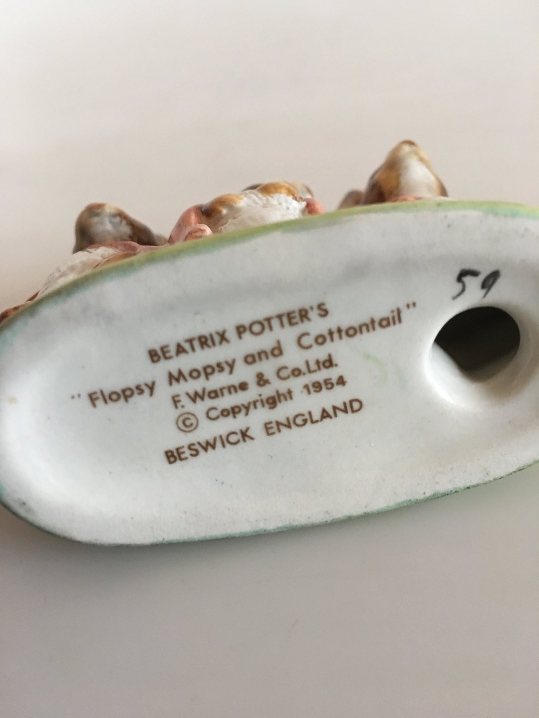 Beswick England Figurine of Beatrix Potter's Flopsy, Mopsy & Cottontail. 8 x 6.4 cm (3 5/32" x 2 33/64"). In good condition, without any chips.