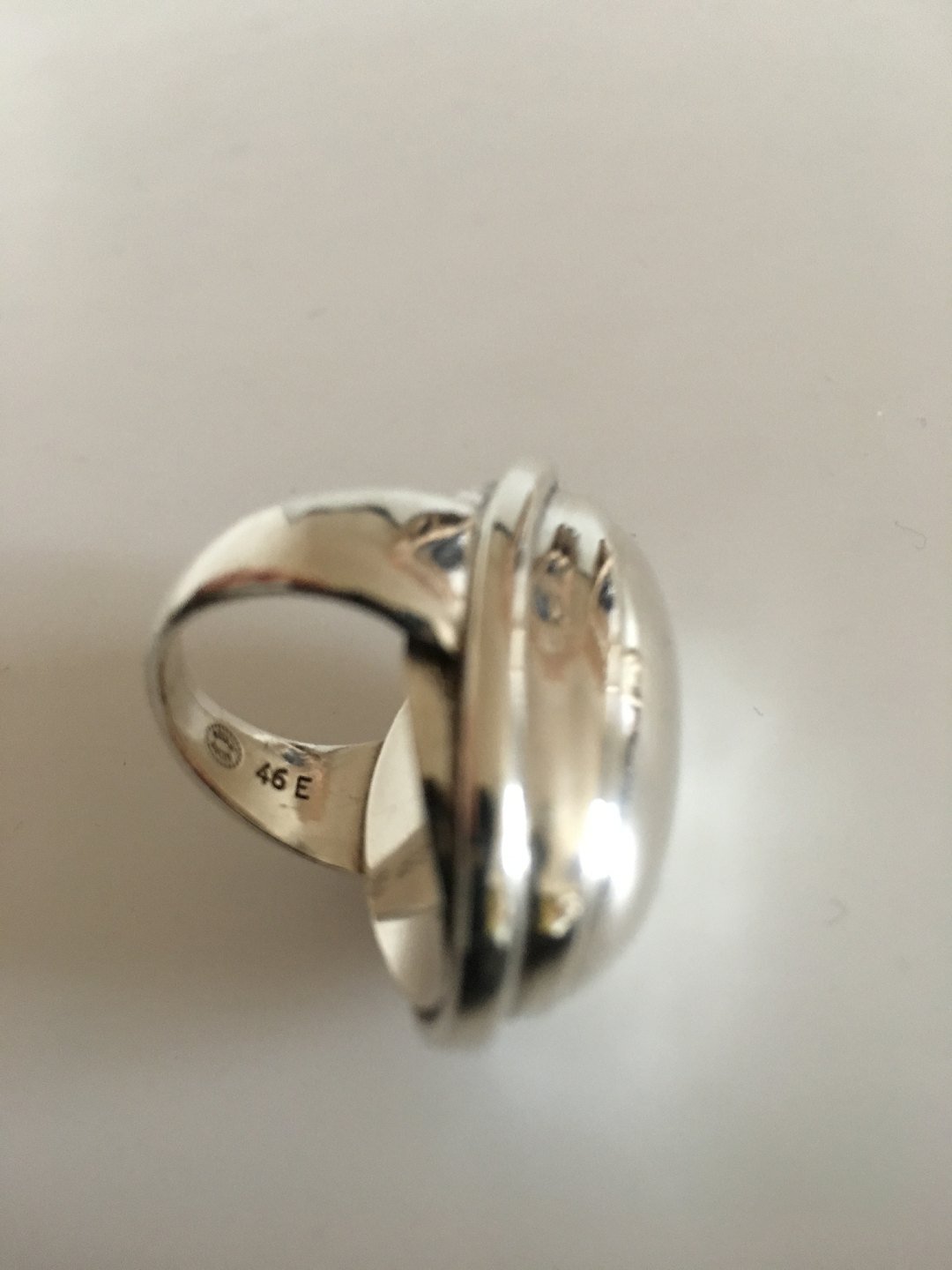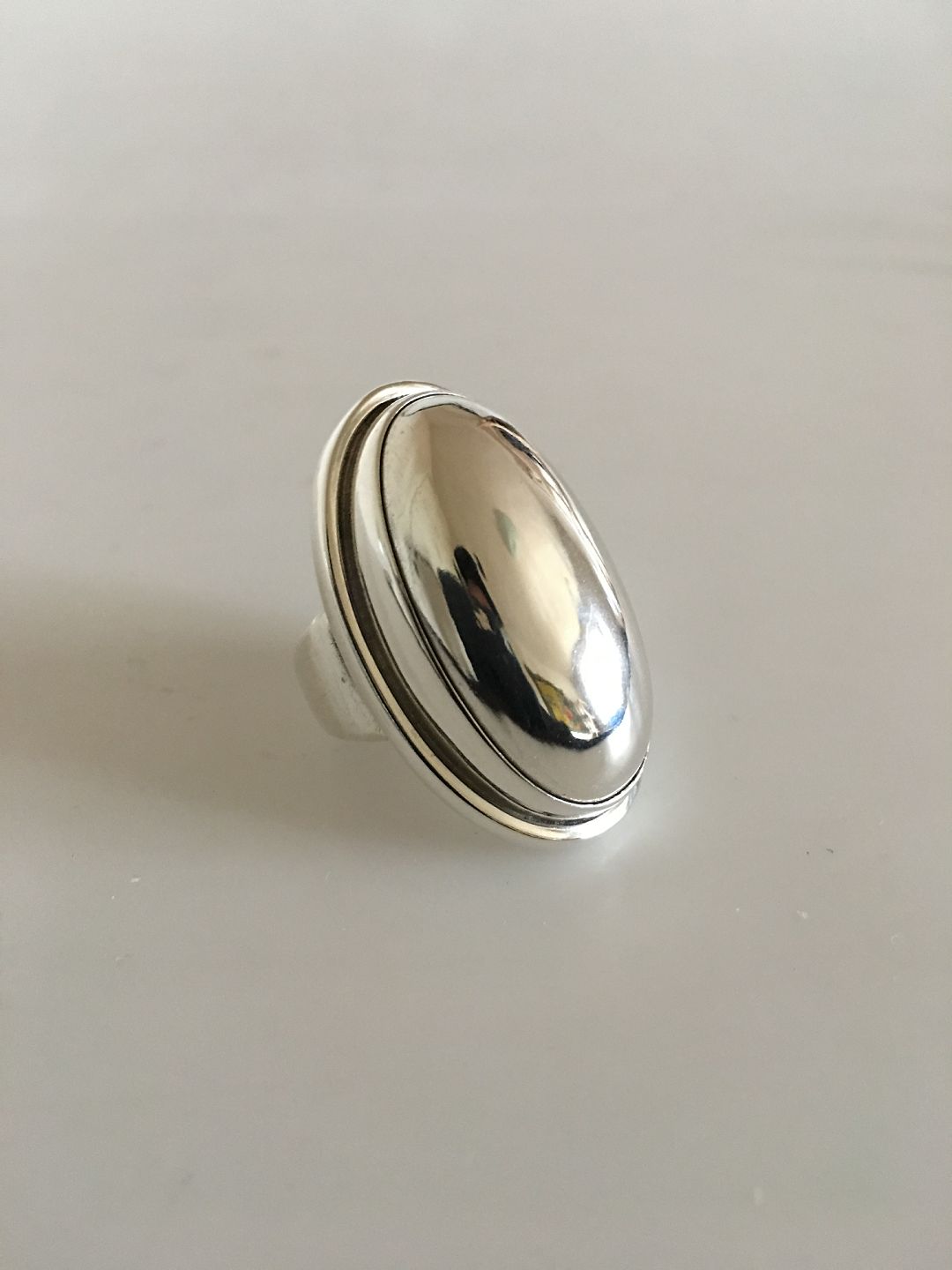 Georg Jensen Sterling Silver Ring No 46E. With oval setting that measures 3.5 cm / 1 3/8 in. With GJ marks dating from after 1945. Ring Size 49 / US 5. Weighs 16.8 g / 0.59 oz.