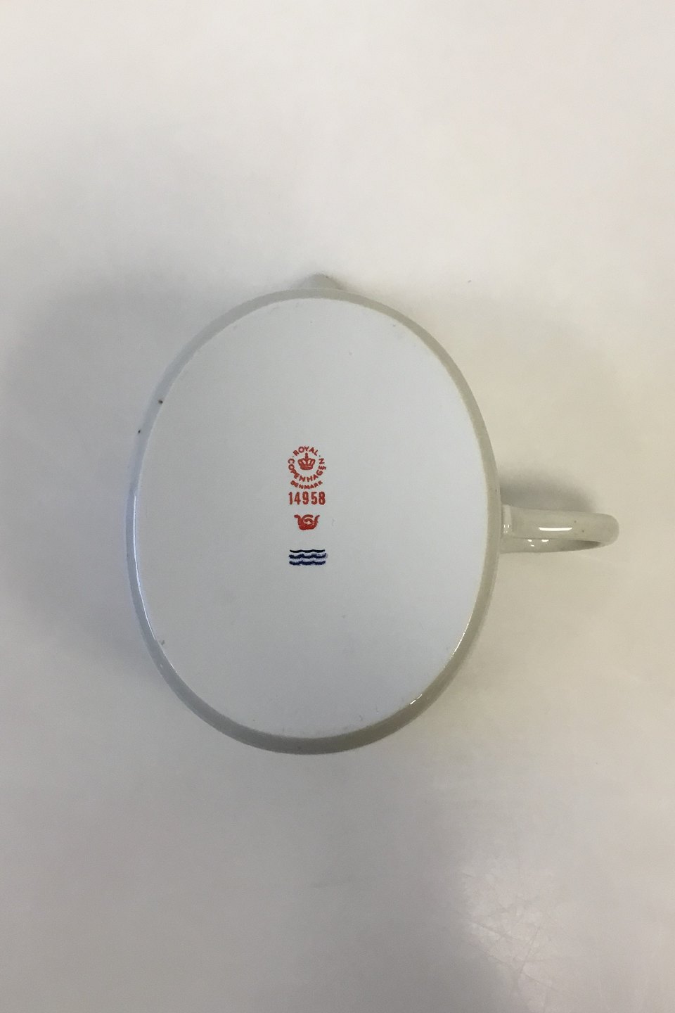 Royal Copenhagen Capella Sauce Bowl with Handle No 14958. Designed by Gertrud Vasegaard. Measures 14 cm / 5 33/64 in. x 9.7 cm / 3 13/16 in. x 6.5 cm / 2 9/16 in.
