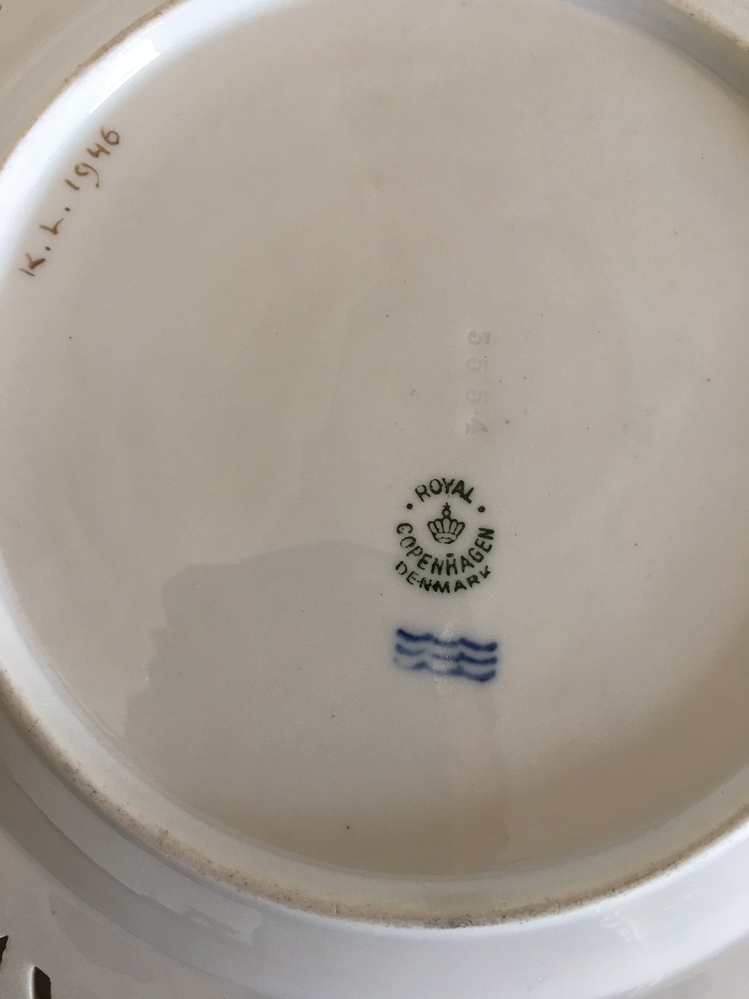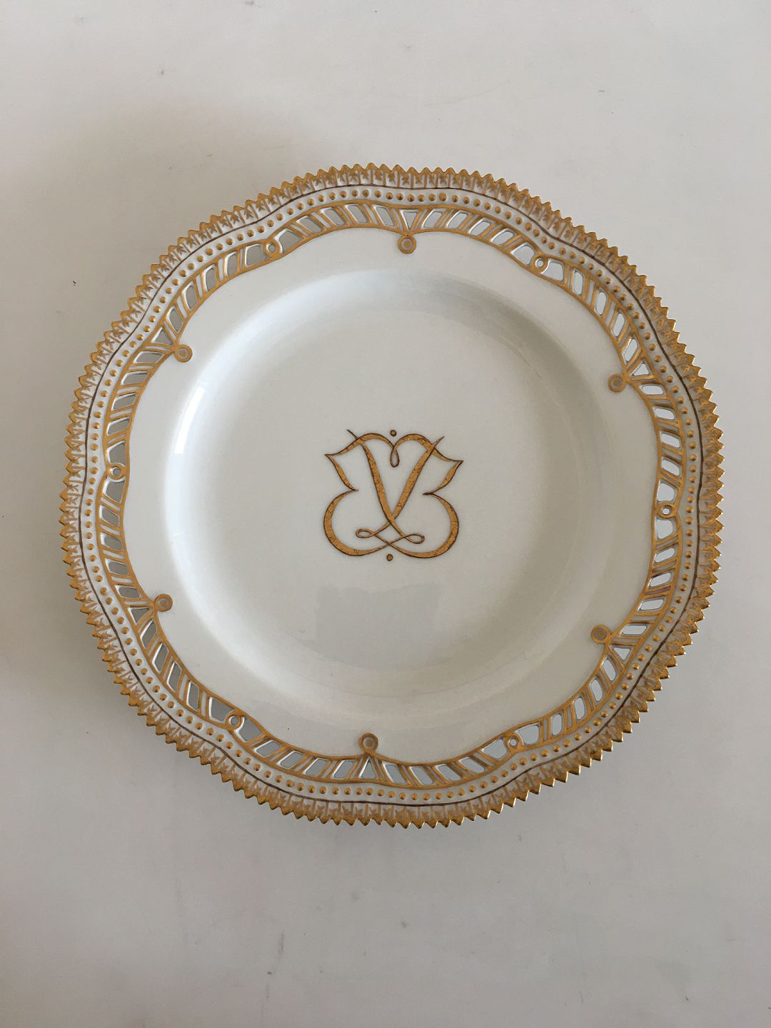 Royal Copenhagen Flora Danica Plate with Pierced Border and Monogram. 2nd Quality. In nice whole condition. 23 cm (9 1/16")