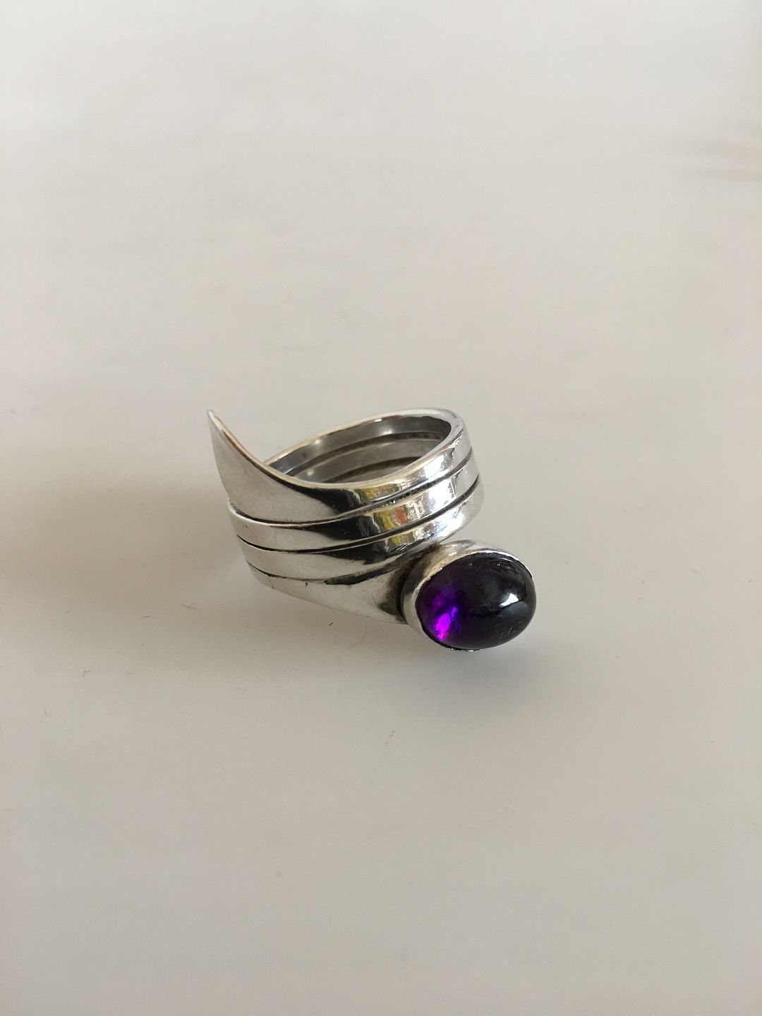 Hans Hansen Sterling Silver Ring with Amethyst. Ring Size 61 / US 9 1/2. Weighs 9 g / 0.32 oz. In nice condition.