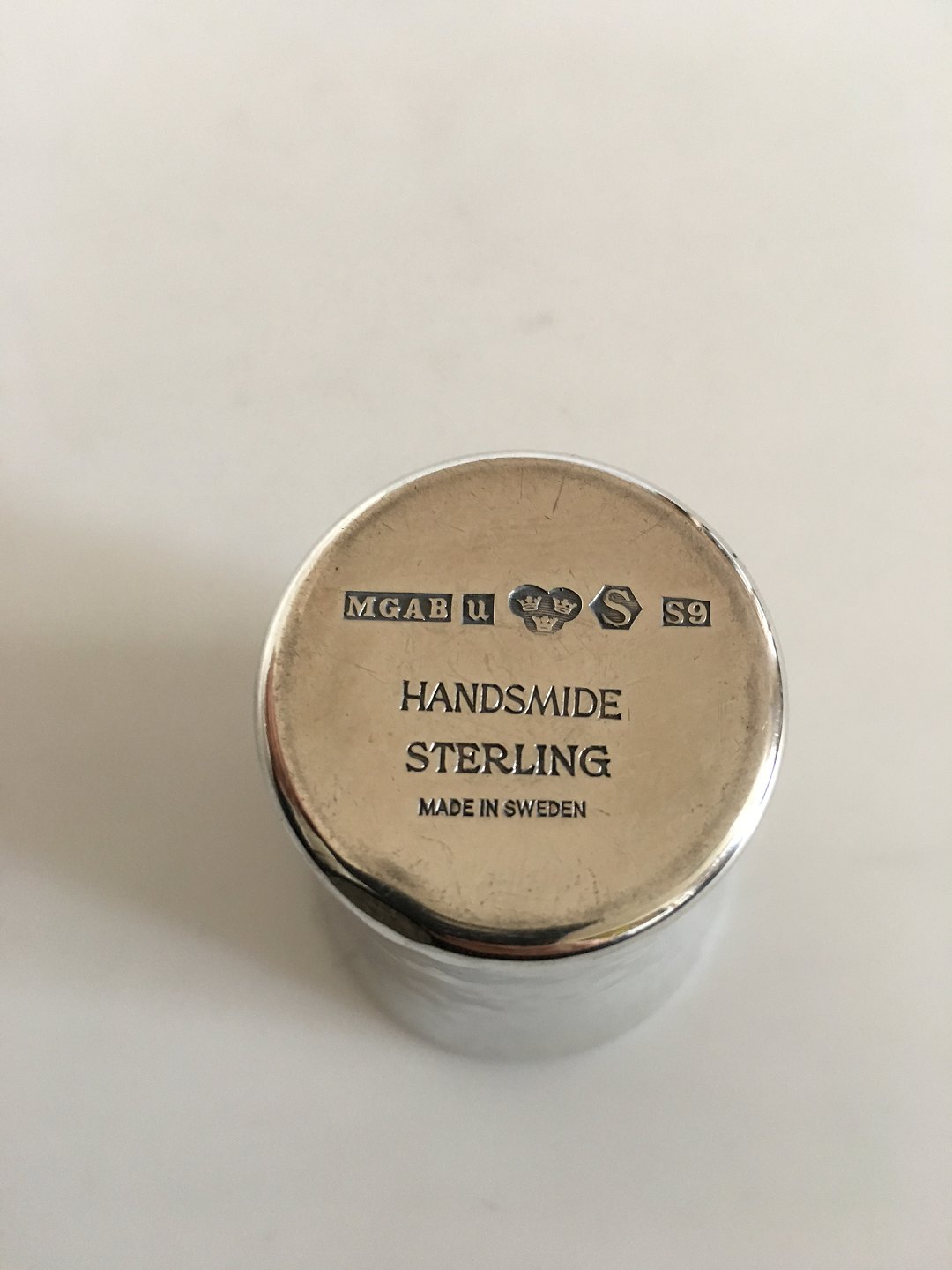 MGAB Sterling Silver Cup, Sweden. 5.5 cm H (2 11/64"). 4 cm dia (1 37/64"). Weighs 54 grams (21 17/64"). In nice condition.