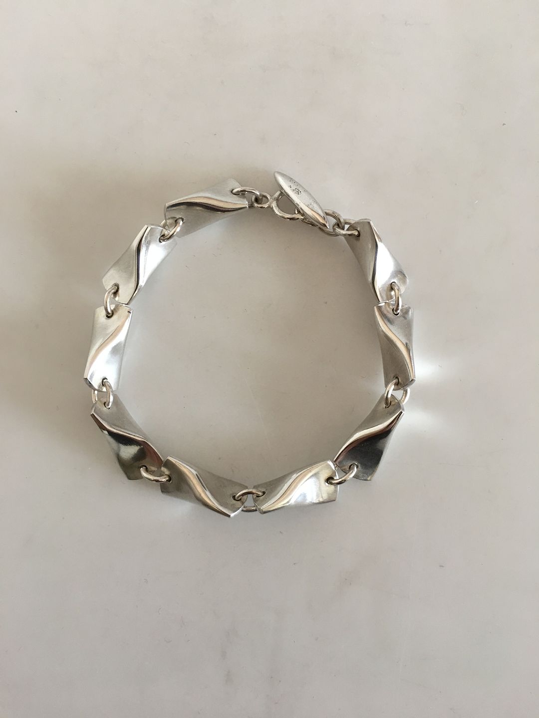 Georg Jensen Sterling Silver Bracelet No. 104A. Designed by Edvard Kindt-Larsen. Measures 19.5 cm / 7 43/64 in. x 1 cm wide. Weighs 21 g/ 0.75 oz.