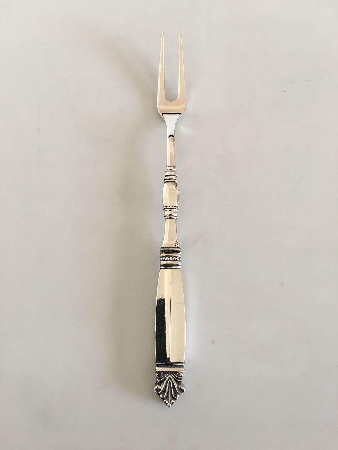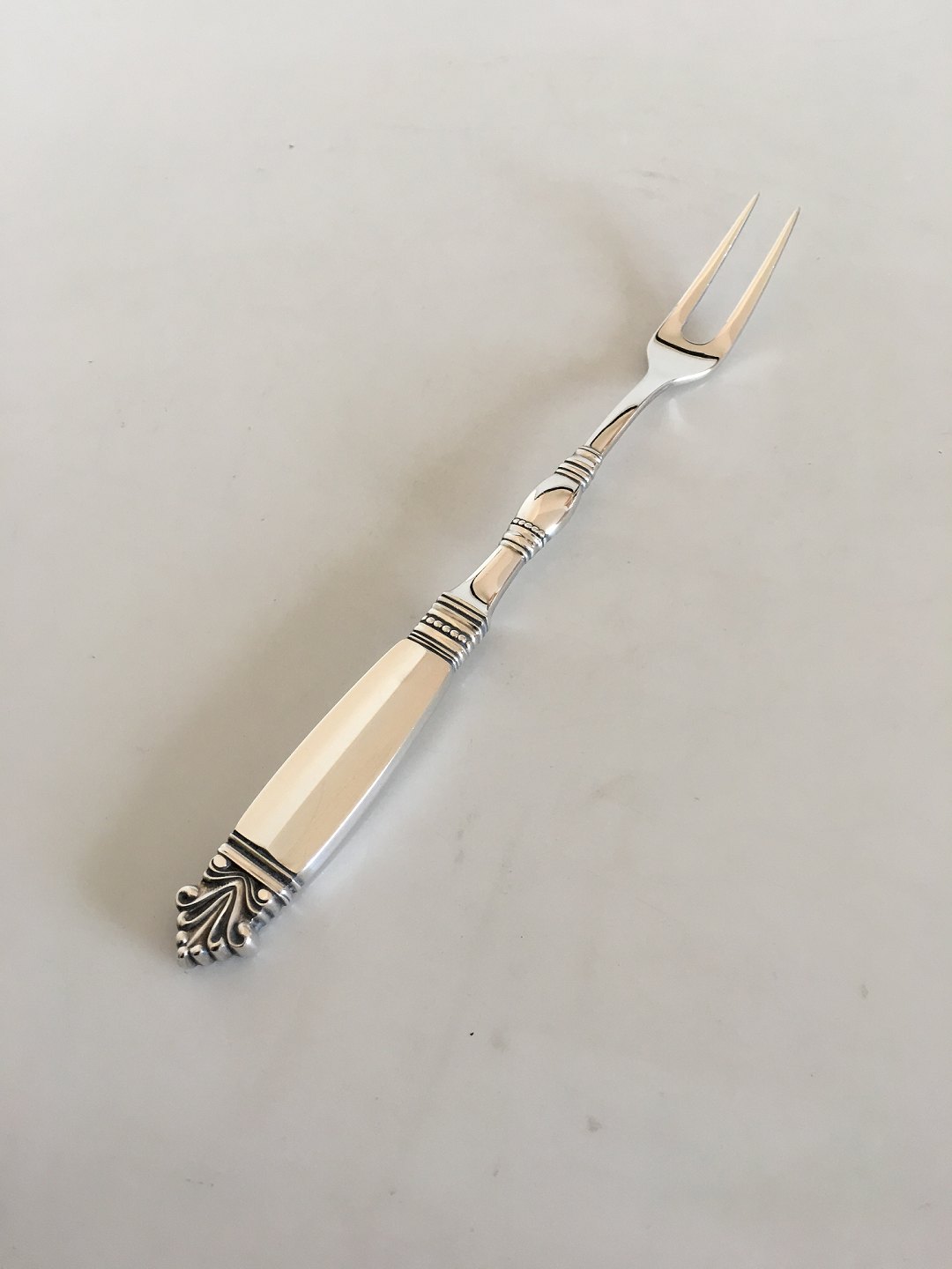 Georg Jensen Sterling Silver Acanthus Large Meat Fork No 142. Measures 22.5 cm / 8 55/64"