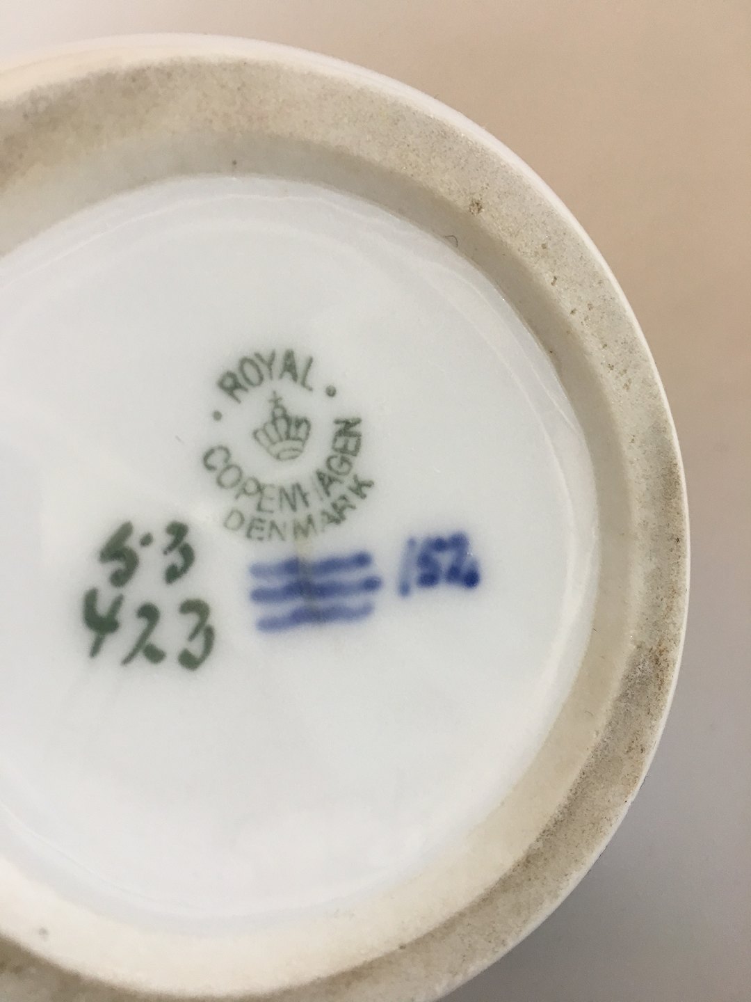 Royal Copenhagen Vase No 53/423 with Flower Motif. 10 cm H (3 15/16"). 2nd Quality. The Vase has a small buning mistake otherwise in nice and whole condition.