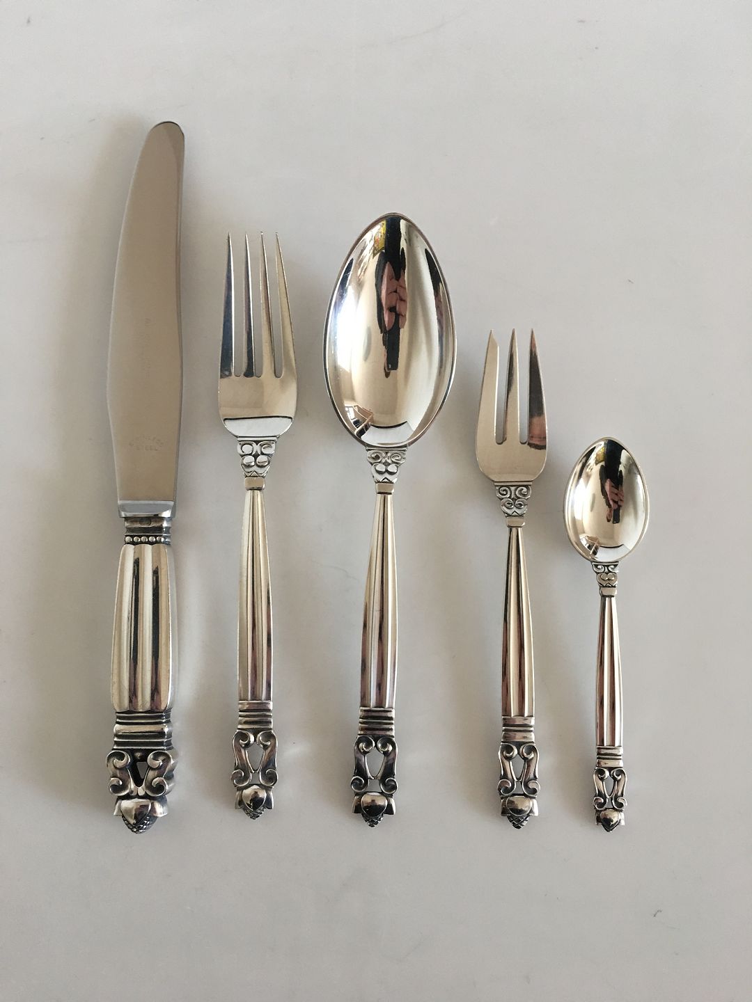 Georg Jensen Sterling Silver Acorn Luncheon Flatware Set. 40 Pieces. 8 People. The set consist of the following items;