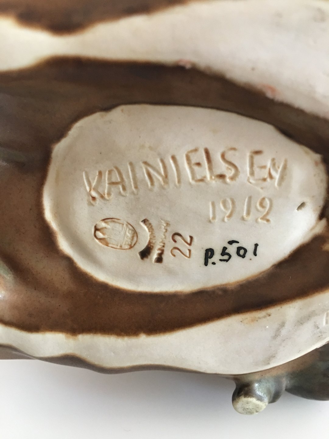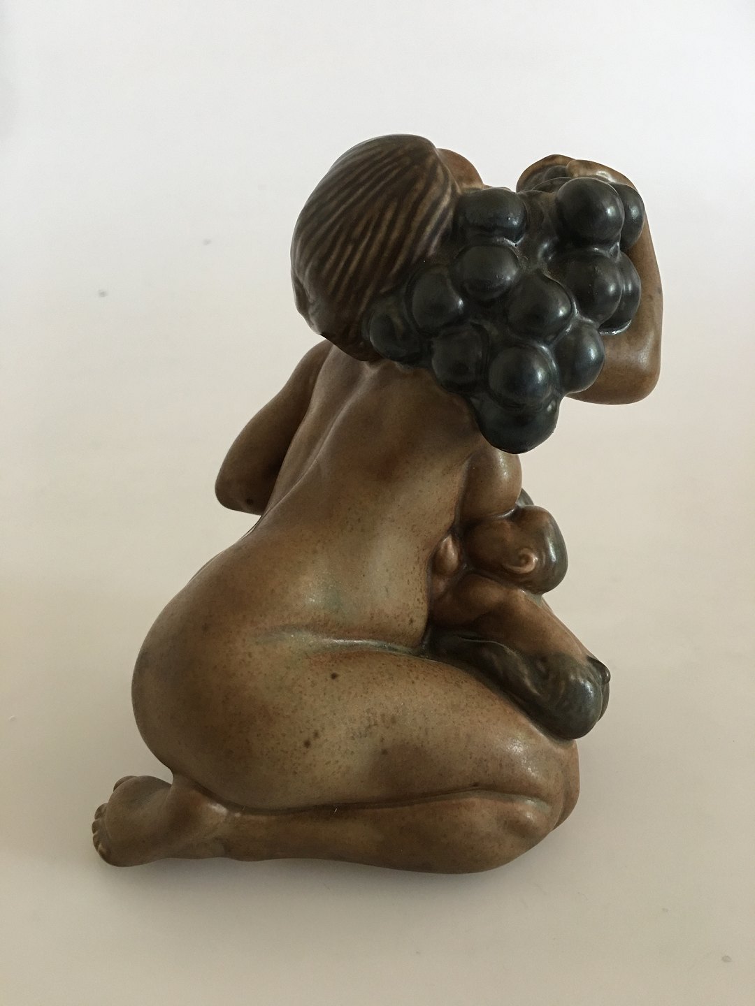 Kai Nielsen Bing & Grondahl Stoneware Figurine no. 22 Woman with Grapes and Faun Children. 15 cm H (5 29/32"). In perfect condition.