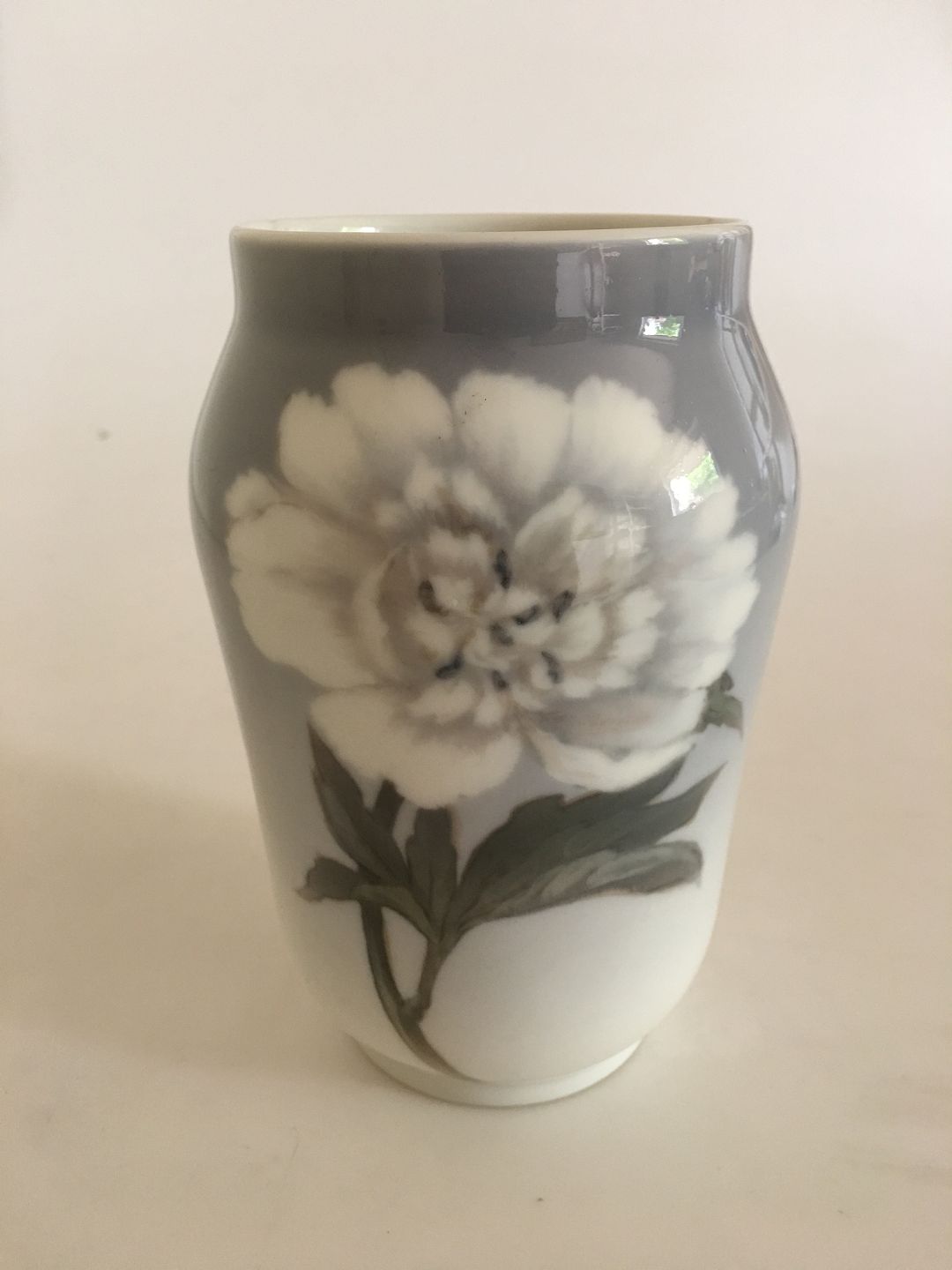 Royal Copenhagen vase No 92/108 Motif with White Paeonia. 16.5 cm H (6 1/2"). 1st Quality. In perfect condition.