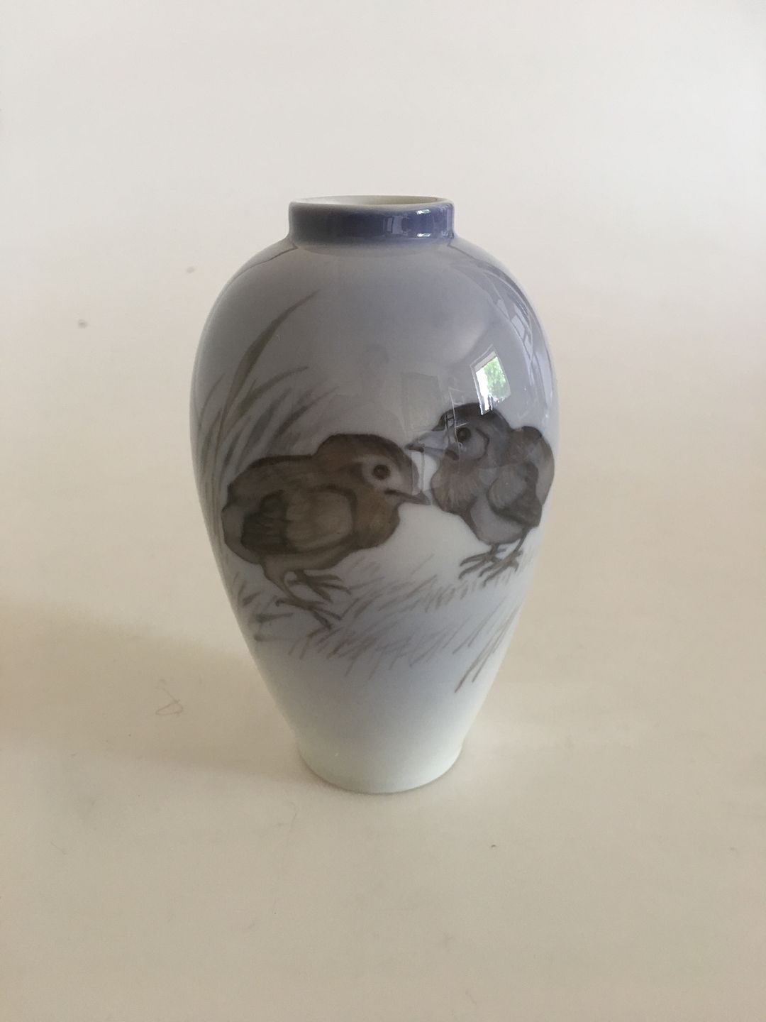 Royal Copenhagen Vase with Bird Motif No 1935/47B. 14 cm H (5 33/64"). 2nd Quality. In nice whole condition.