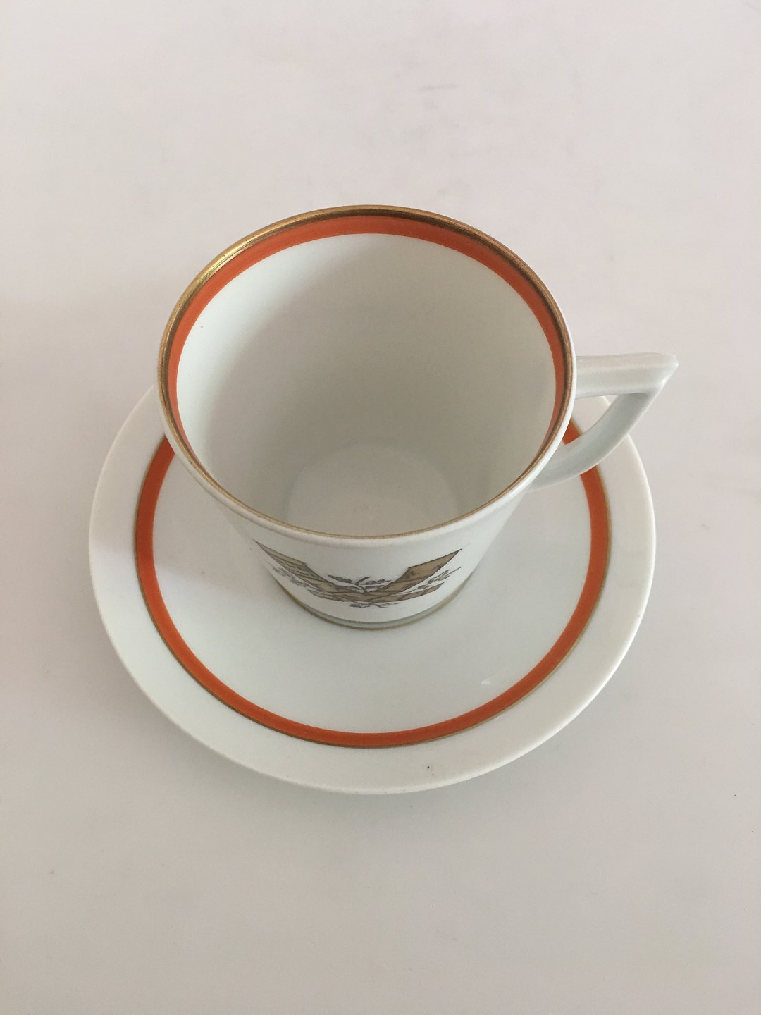 Royal Copenhagen Golden Horns with Orange Band Coffee Cup and Saucer No 883/9481. Cup measures 6.5 cm H. 7.5 cm dia.