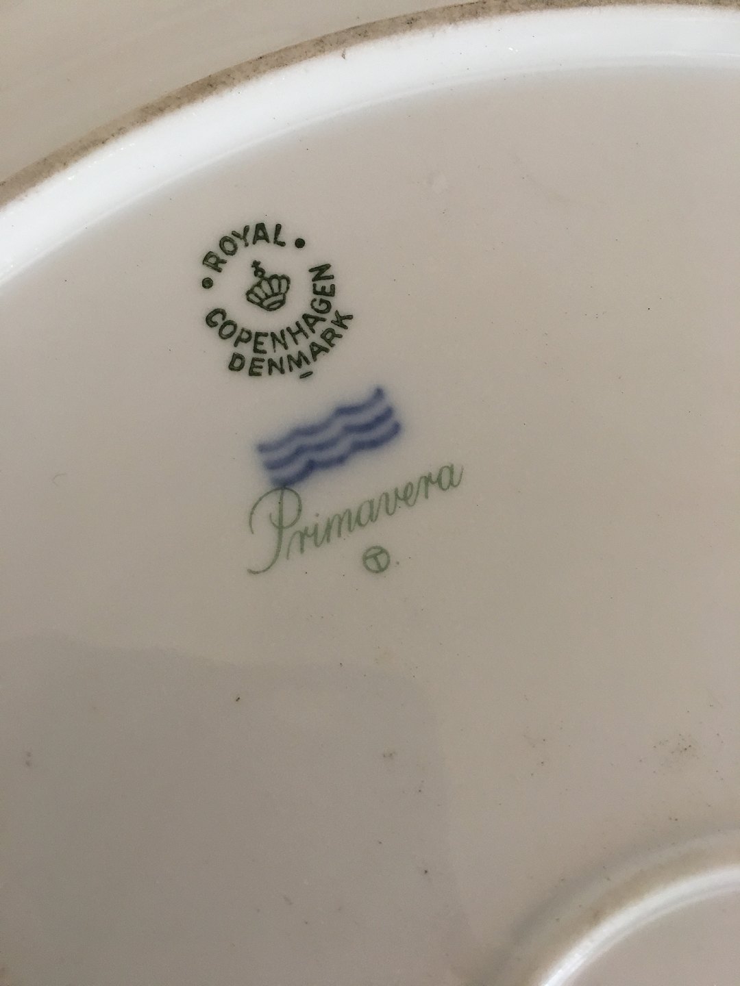 Royal Copenhagen Primavera Thorkild Olsen Round Serving Platter No 1515/14038. White Service with flower decoration and gold band. The platter measures 34 cm dia.