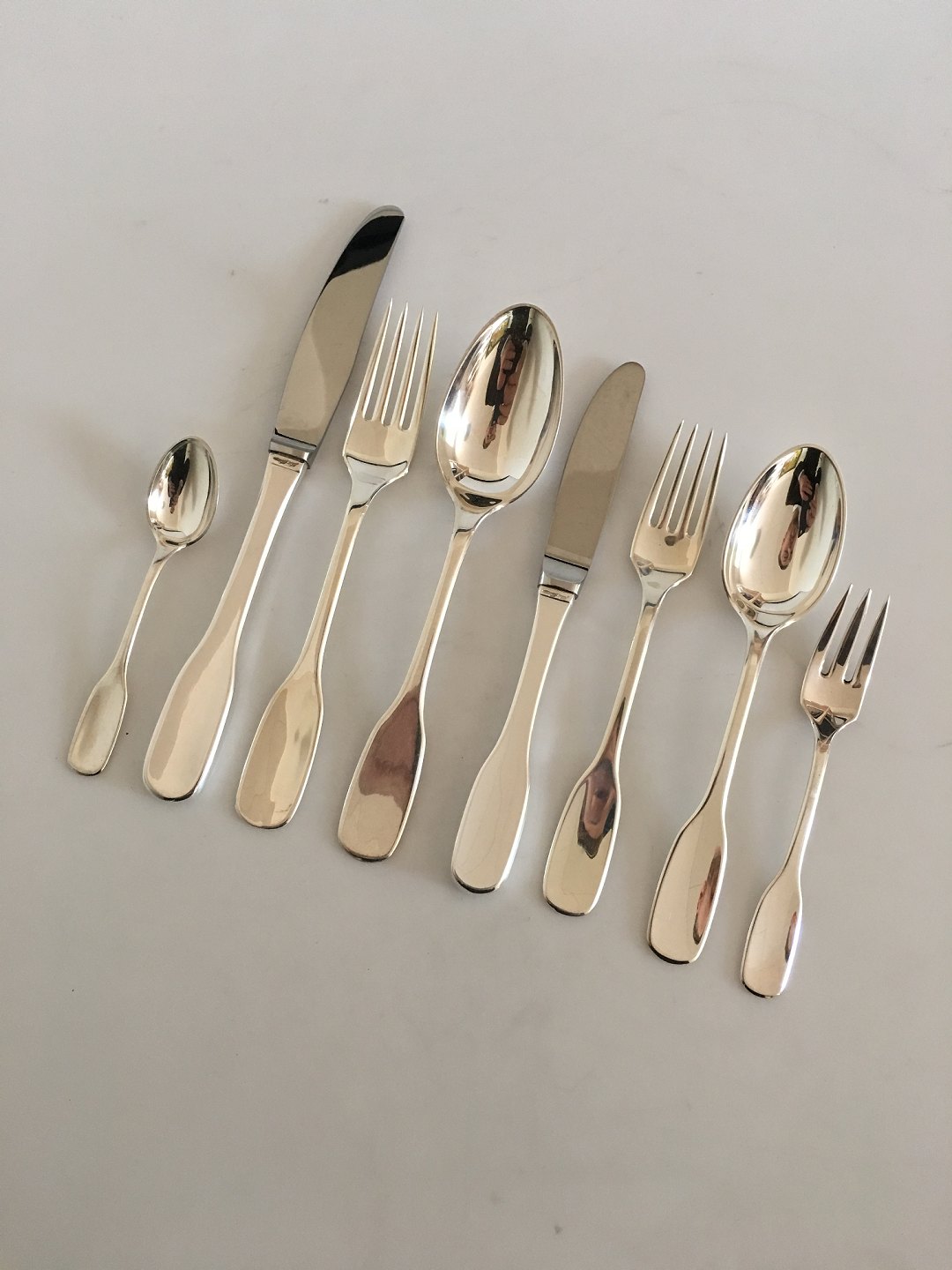 "Susanne" Hans Hansen Sterling Silver Flatware Set for 12 People. 96 Pieces. The set consists of the following pieces;