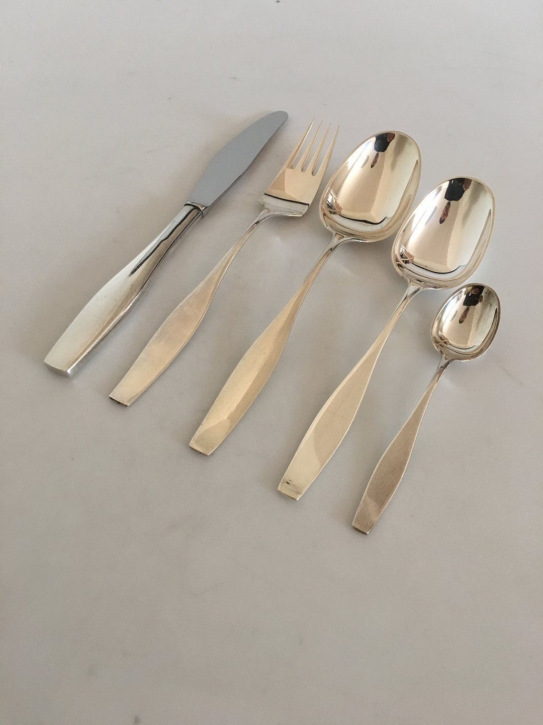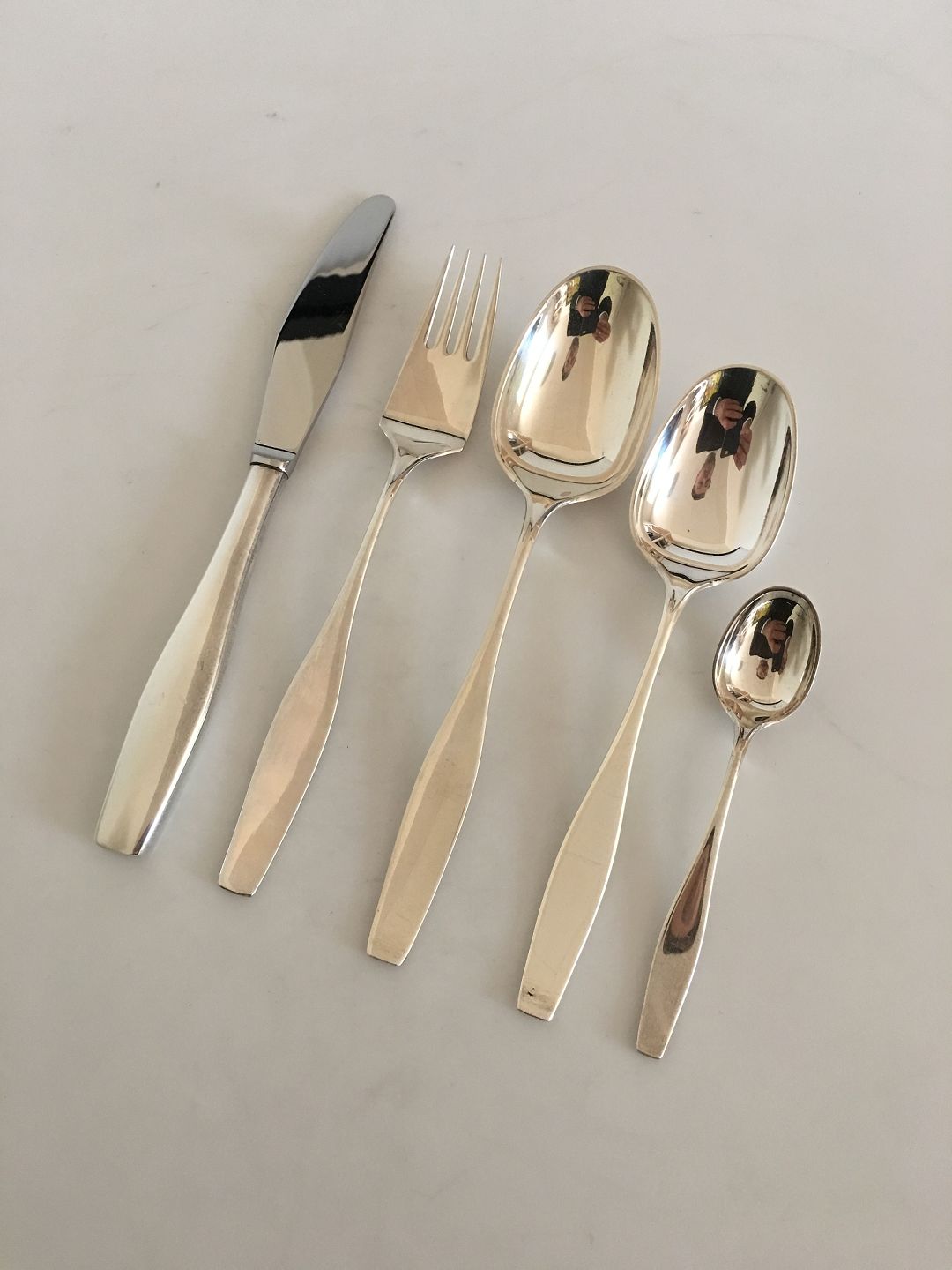 "Charlotte" Hans Hansen Sterling Silver Flatware Set for 12 People. 60 Pieces. The consists of the following items;