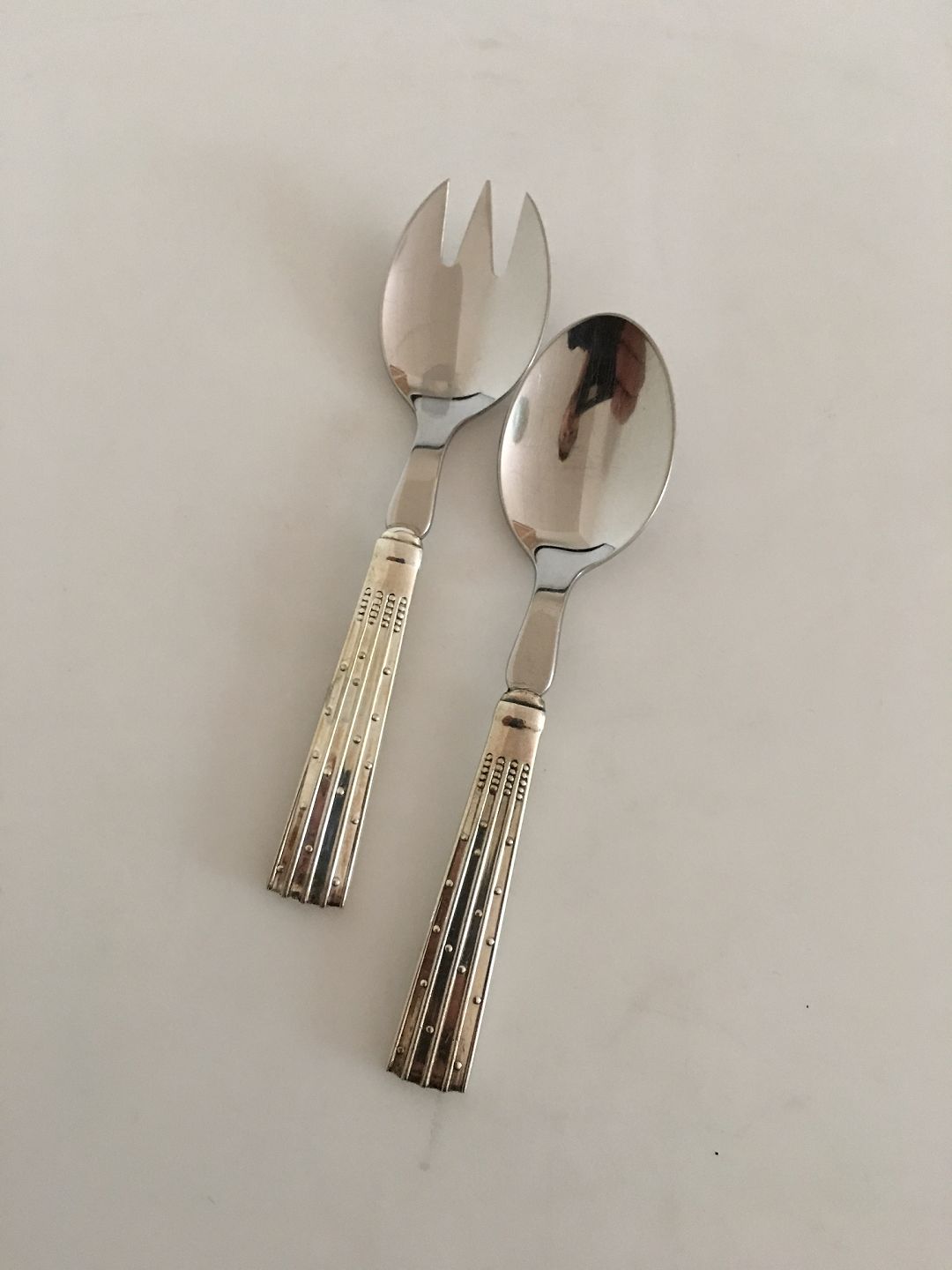 "Champagne" O.V. Mogensen Silver and Stainless Steel Small Salad Servers. 13.5 cm L (5 5/16")