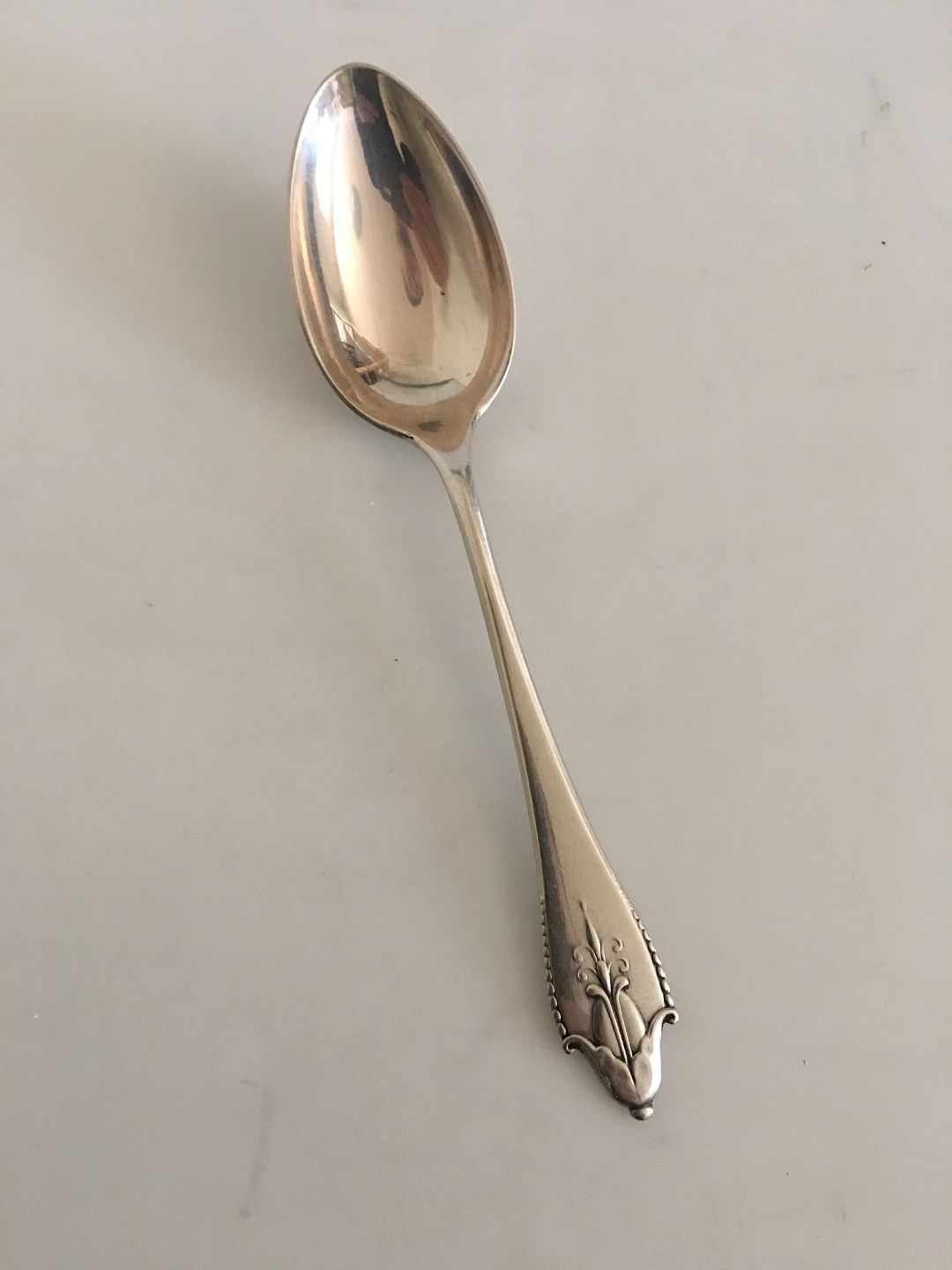 Georg Jensen Akkeleje Sterling Silver Dessert Spoon No 021. Measures 17 cm / 6 5/8 in.