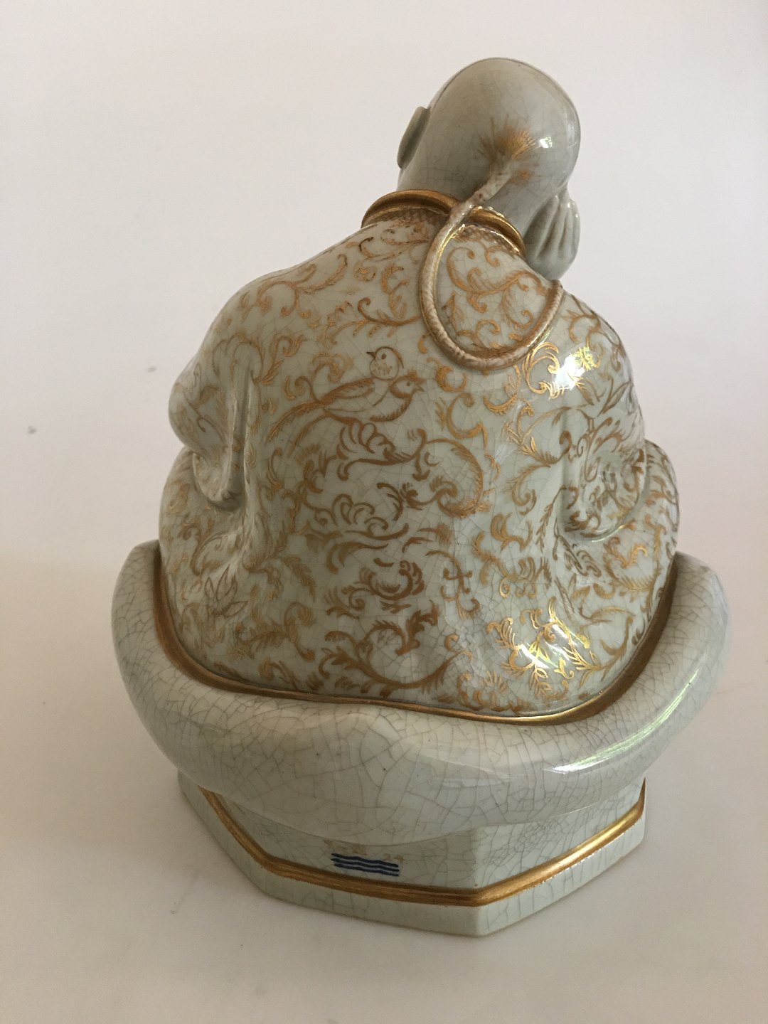 Royal Copenhagen Georg Thylstrup Crackleware Figurine of Buda with Unique Decoration by Nicolai Tideman (1888-1975). About 21 cm H (8 17/64"). In great condition.