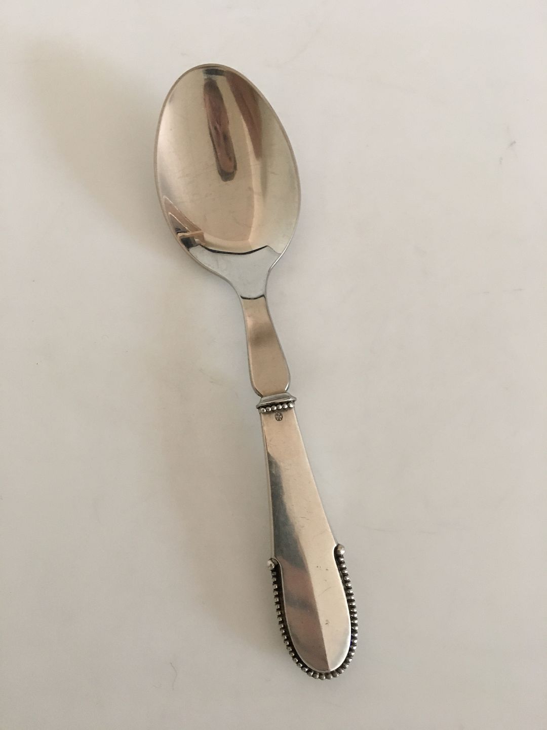 Georg Jensen Beaded Serving Spoon in Sterling Silver and Steel No 96. Measures 19.3 cm / 7 19/32 in.