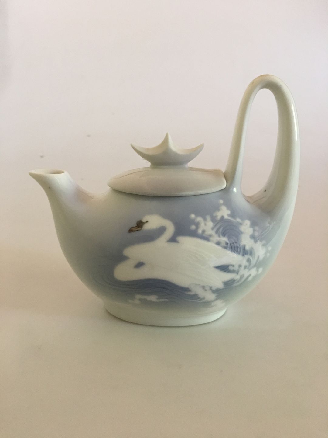 Royal Copenhagen Coffee Pot No. 8270 with Unique Swan Motif by Marianne Höst. Measures to the handles top 14.5 cm H. 16 cm L. In great whole condition.