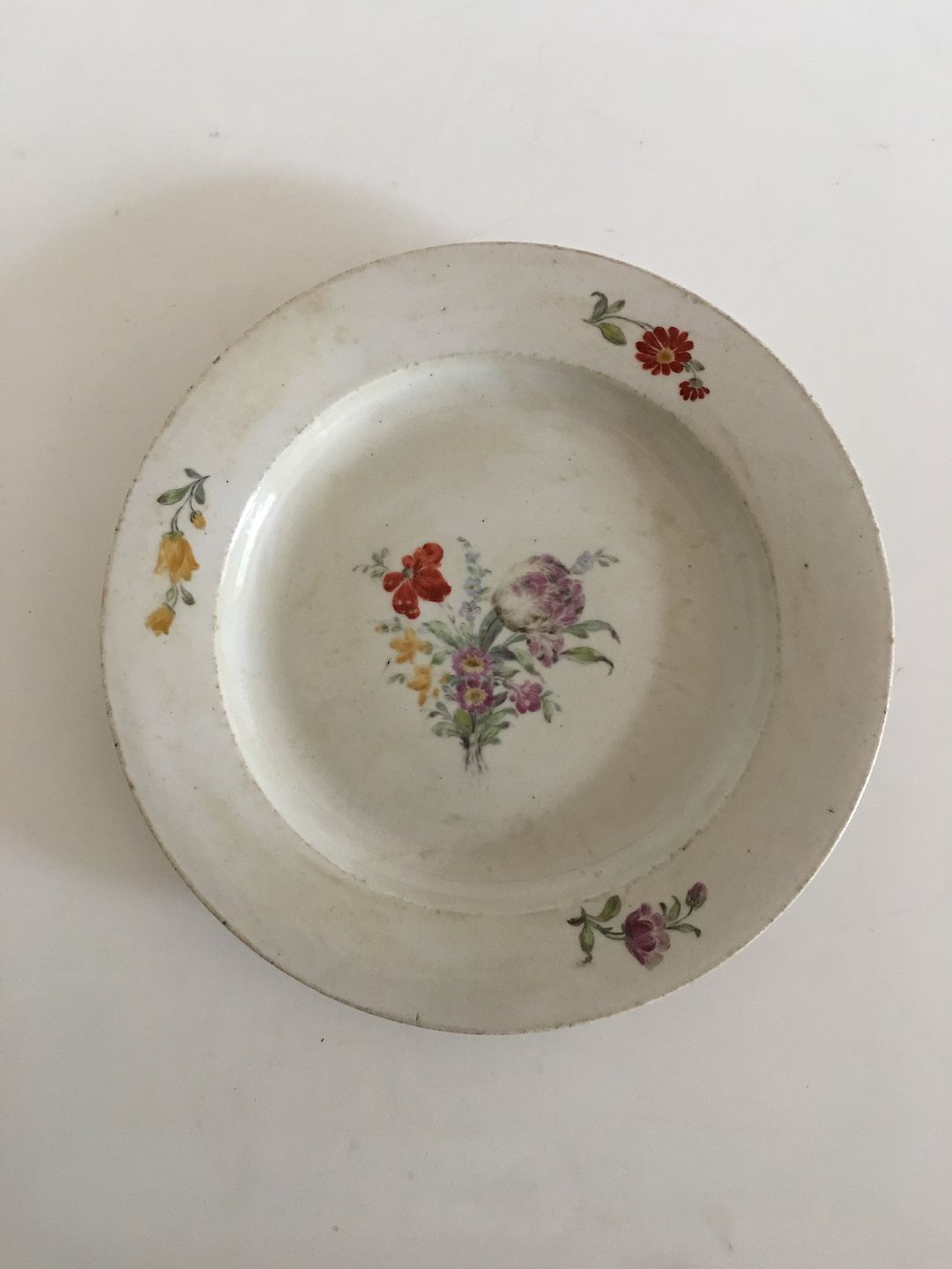Antique Royal Copenhagen Plate with Flower Decoration from 1790-1810. The porcelain is quite worn and tired looking, and most of the flower decoration is worn off. Otherwise somewhat intact. Measures 24.5 cm