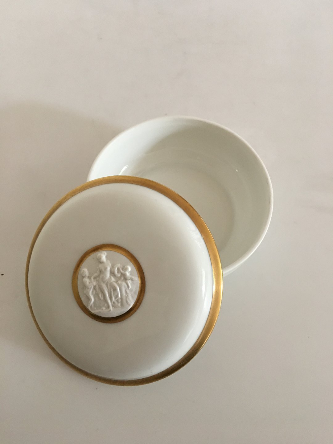 Bing & Grøndahl Lidded Bowl. 4.5 cm H with lid on. 10 cm dia. 1st quality in good condition. From 1962-1970