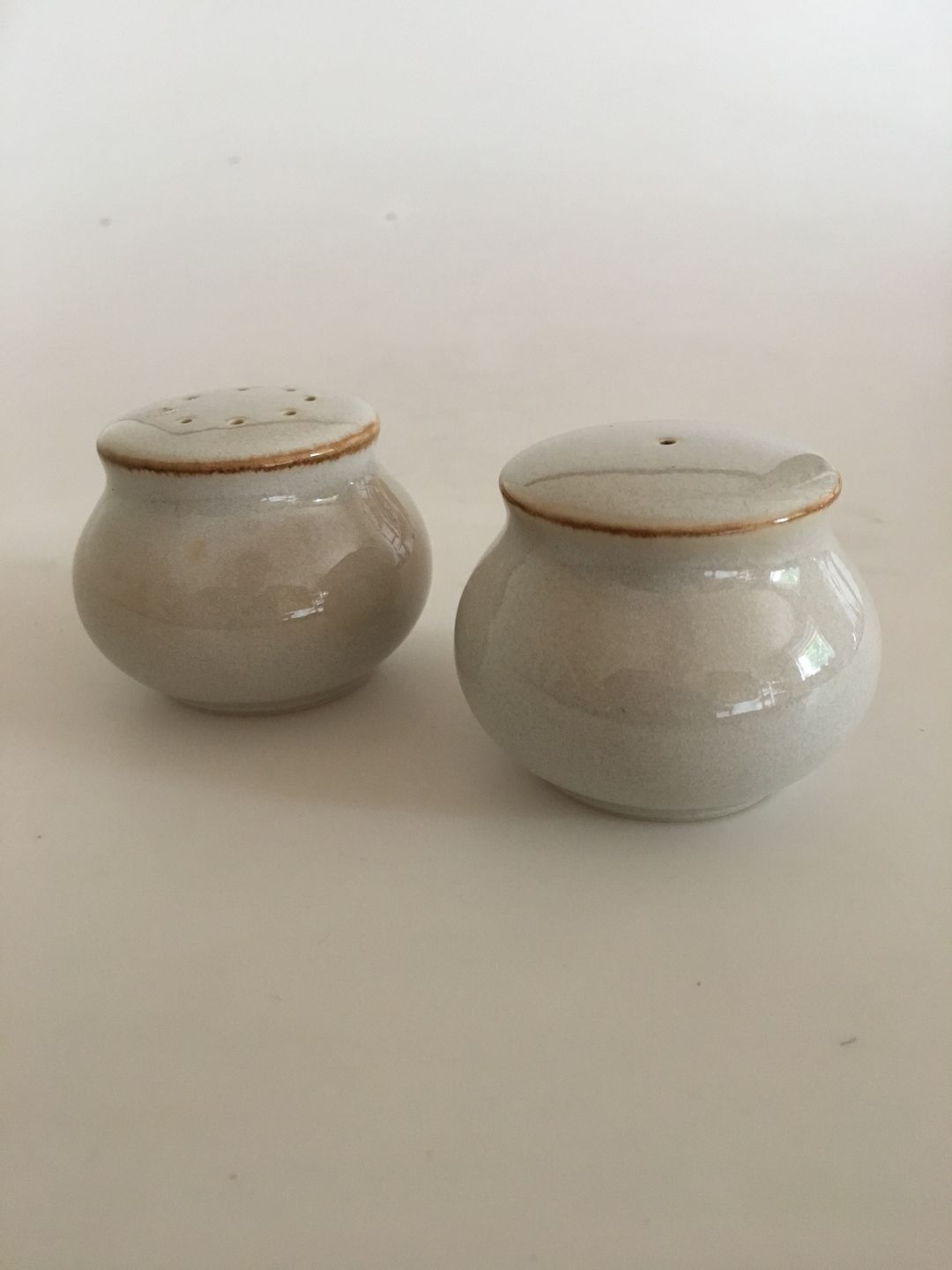 Bing & Grondahl Glazed Stoneware "Coppelia" Salt and Pepper Set. Measures 5 cm / 1 31/32 in. x 6.5 cm / 2 9/16 in. dia.