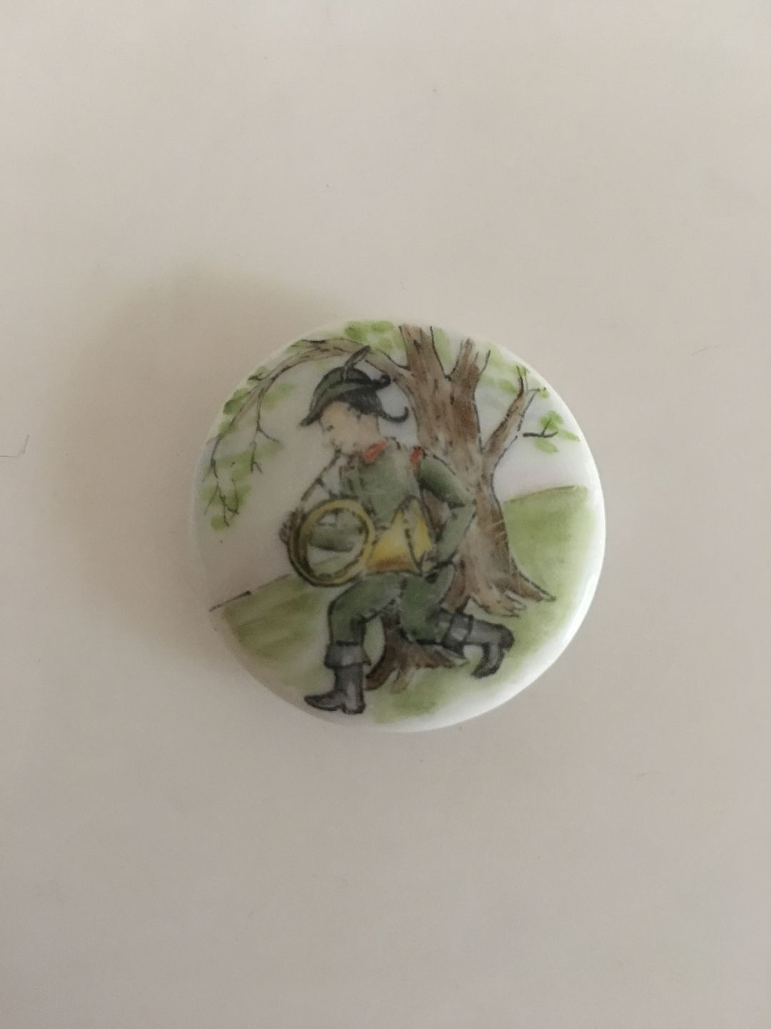 Royal Copenhagen Porcelain Button with Handpainted Motif of Musician. 3 cm dia.