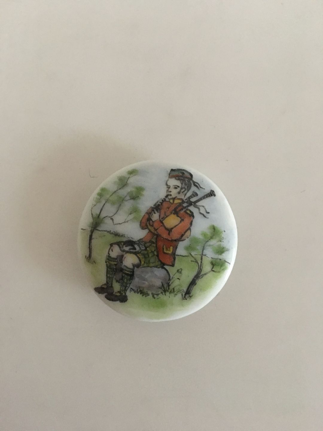 Royal Copenhagen Porcelain Button with Handpainted Motif of Musician. 3 cm dia