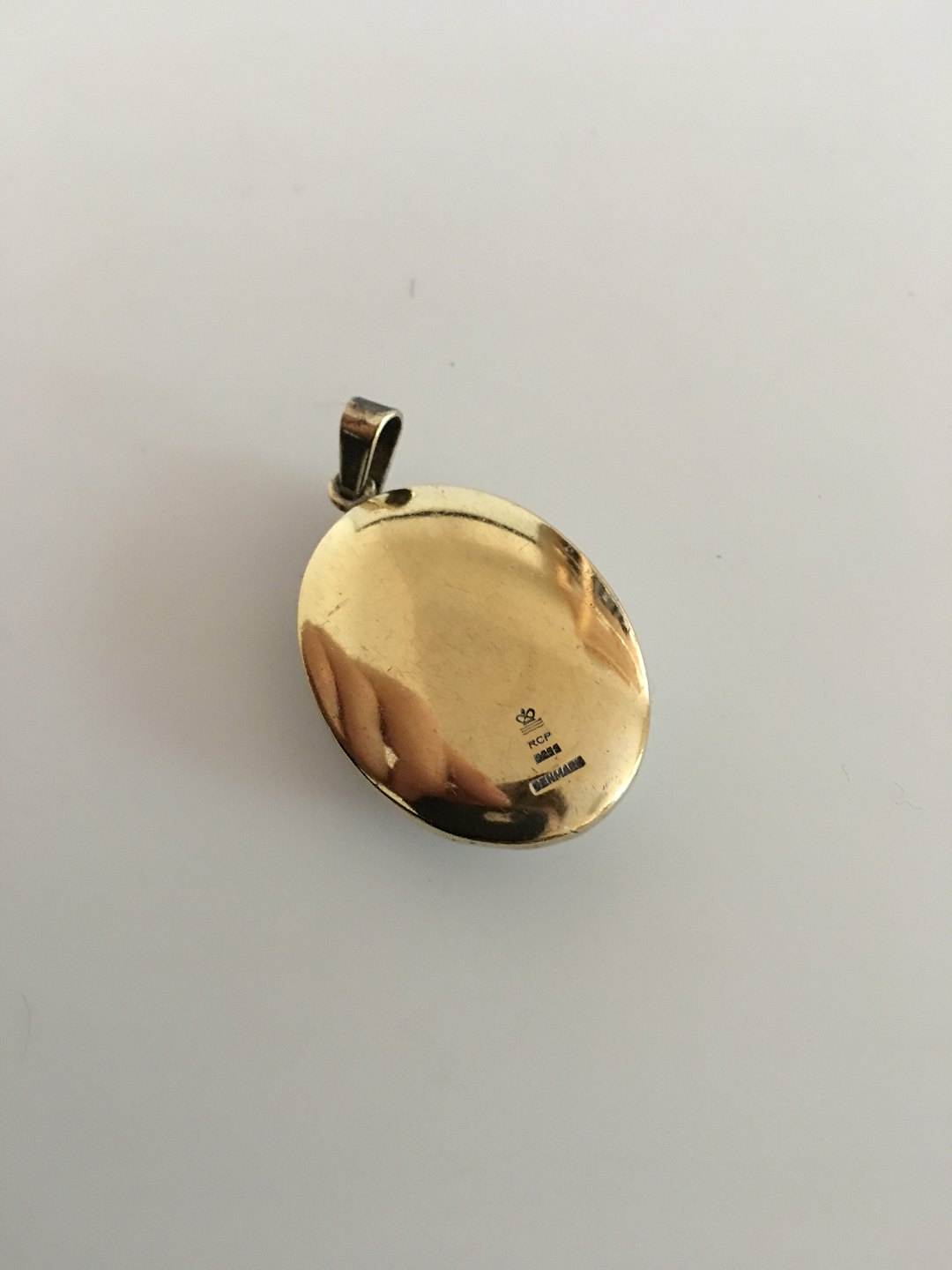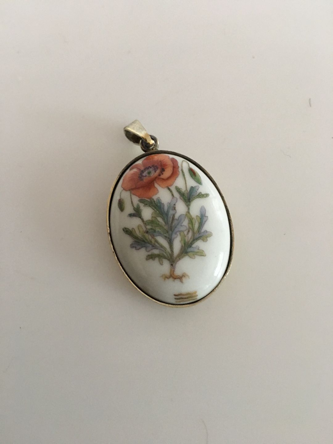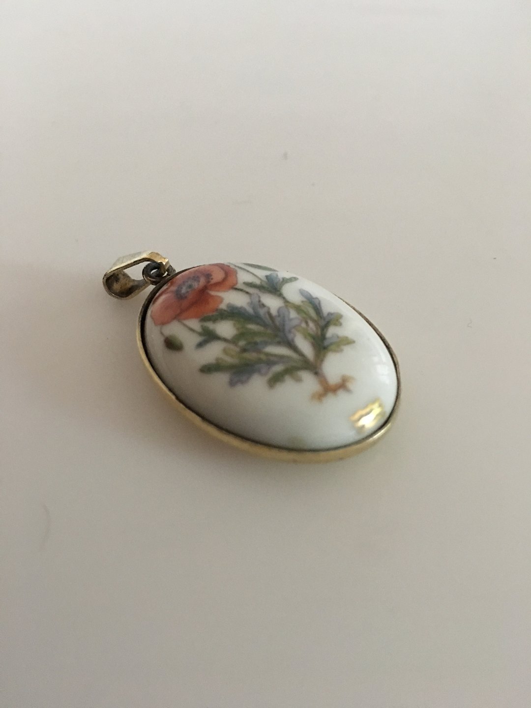 Royal Copenhagen Porcelain Pendant in Mounted in Gilded Sterling Silver. Measures 3.2 cm. In nice condition.