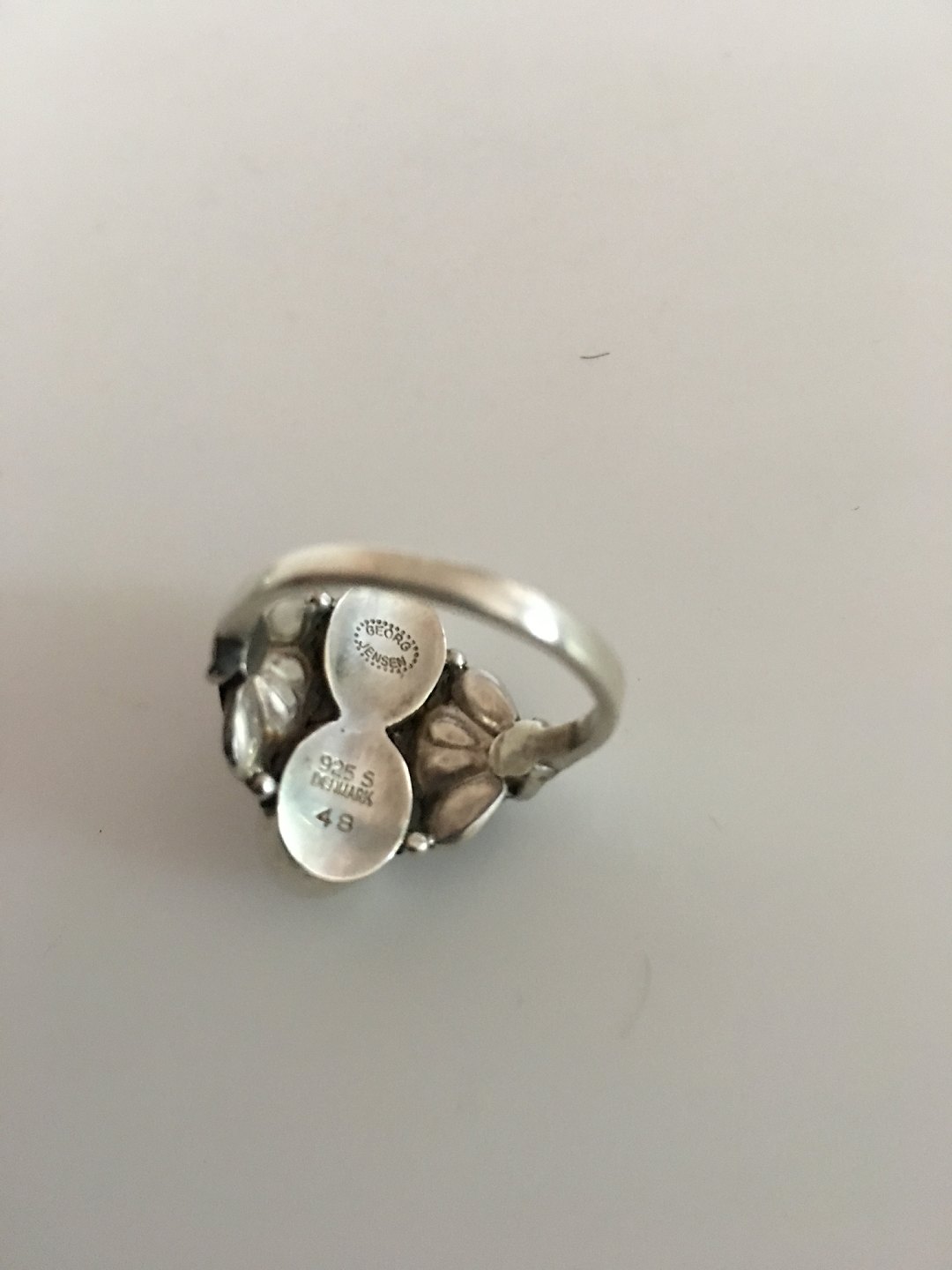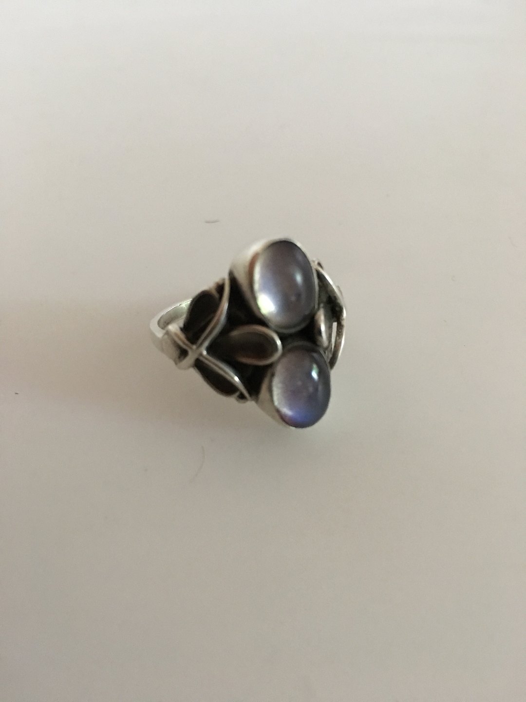 Georg Jensen Sterling Silver Ring No 48 with Moon Stones. Ring Size 58 / US 8 1/2. Manufactured after 1945. In nice condition.