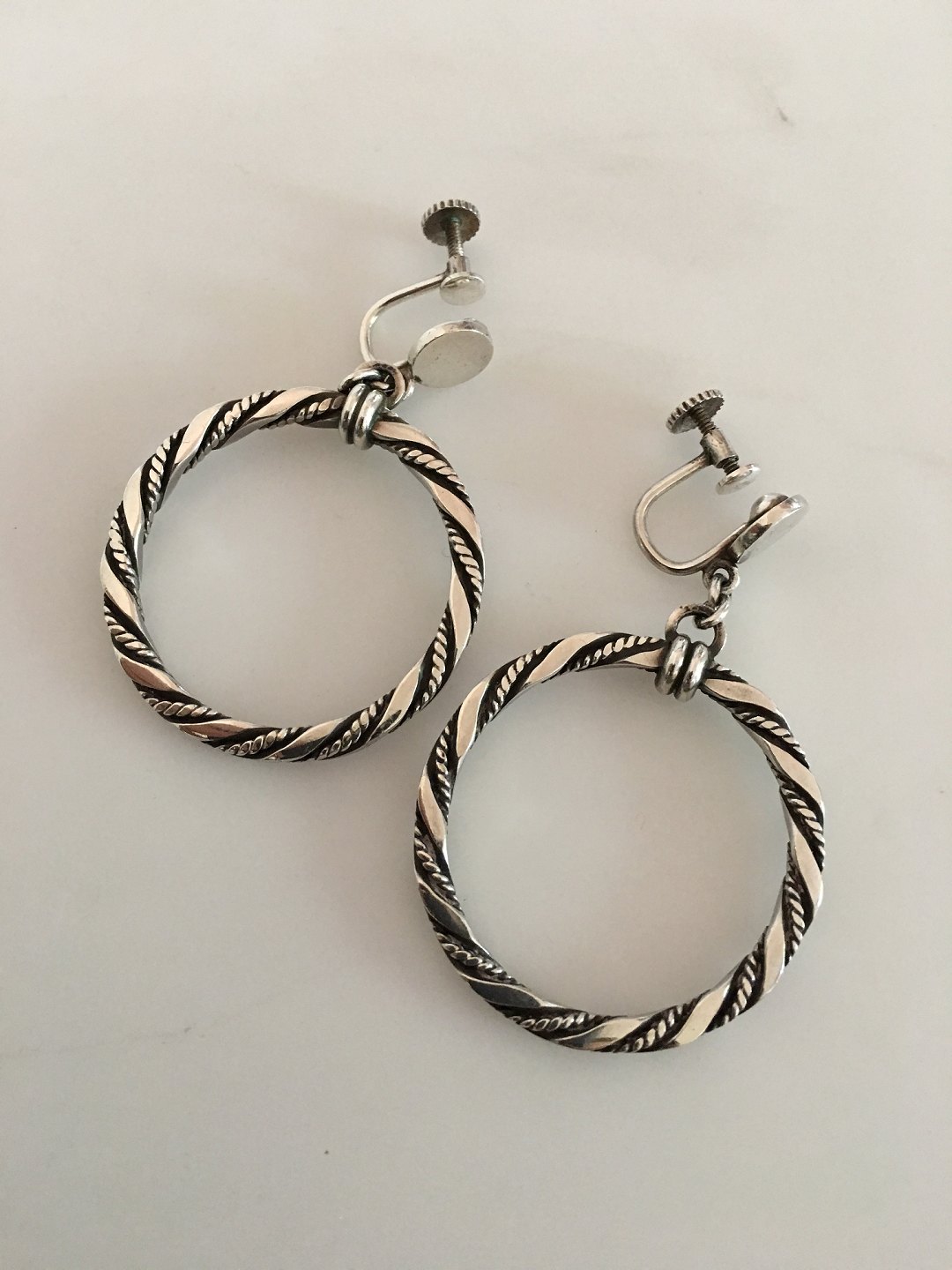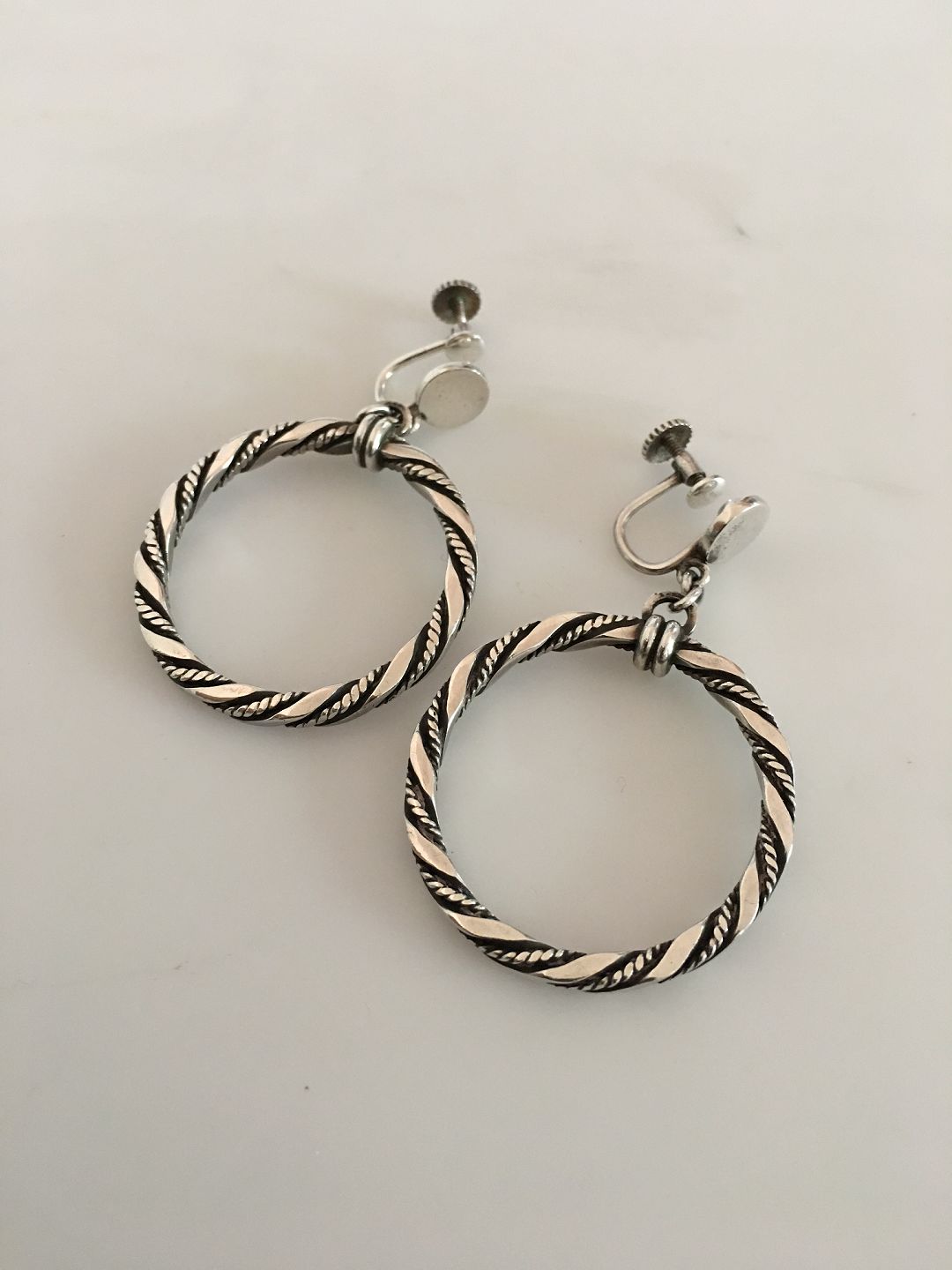Georg Jensen Sterling Silver Earrings (Screws). Measures 3.5 cm / 1 3/8 in. dia. Weighs combined 21 g / 0.74 oz.